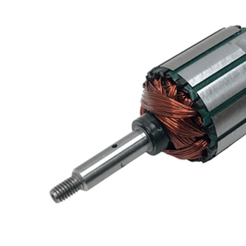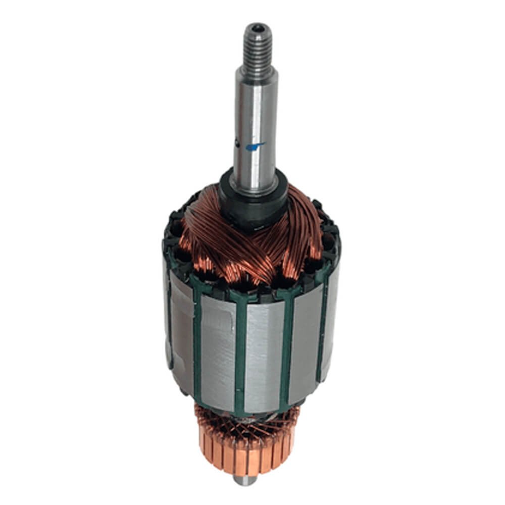 Induzido também conhecido como rotor, usado em conjunto com o estator ou bobina de campo, rolamentos e escovas de carvão.