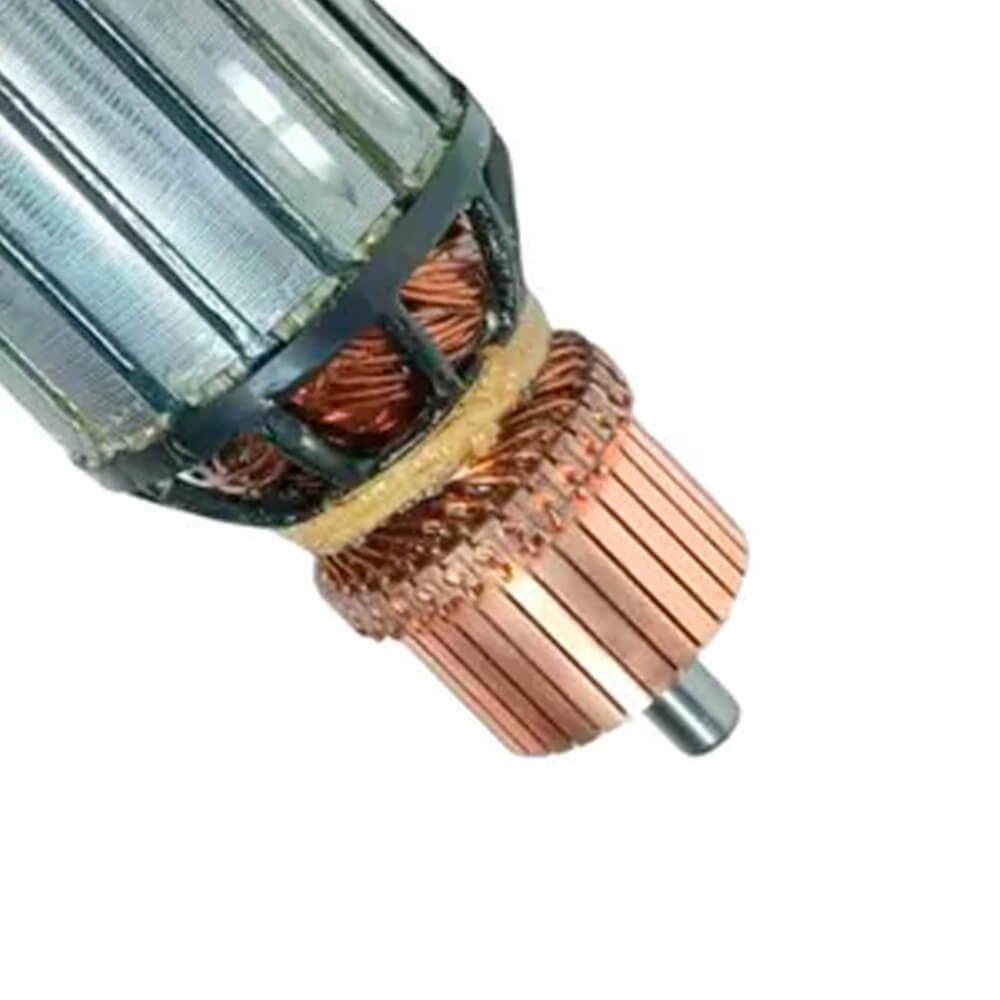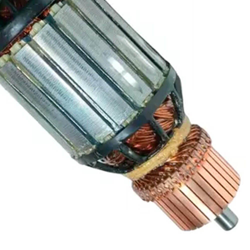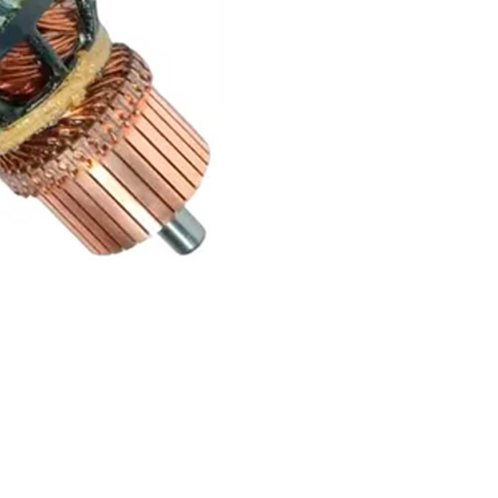 Induzido também conhecido como rotor, usado em conjunto com o estator ou bobina de campo, rolamentos e escovas de carvão.
