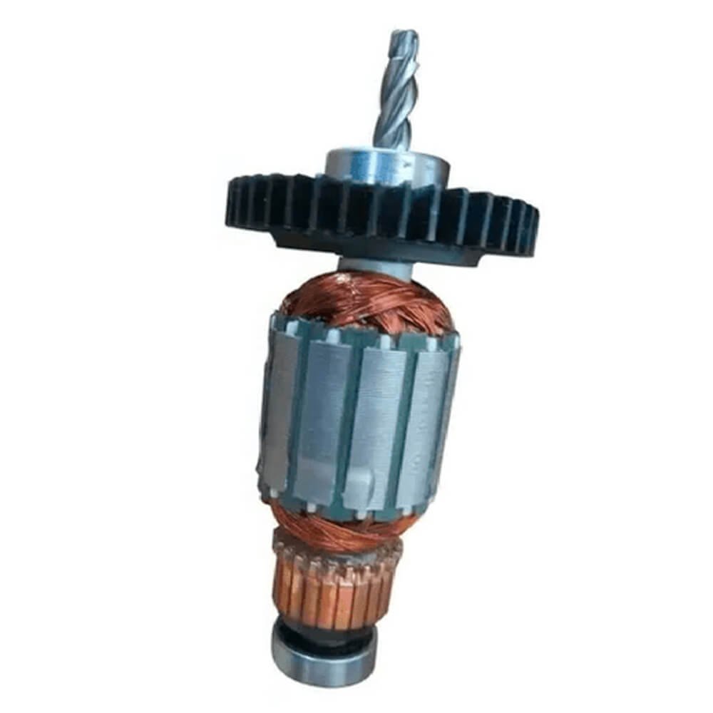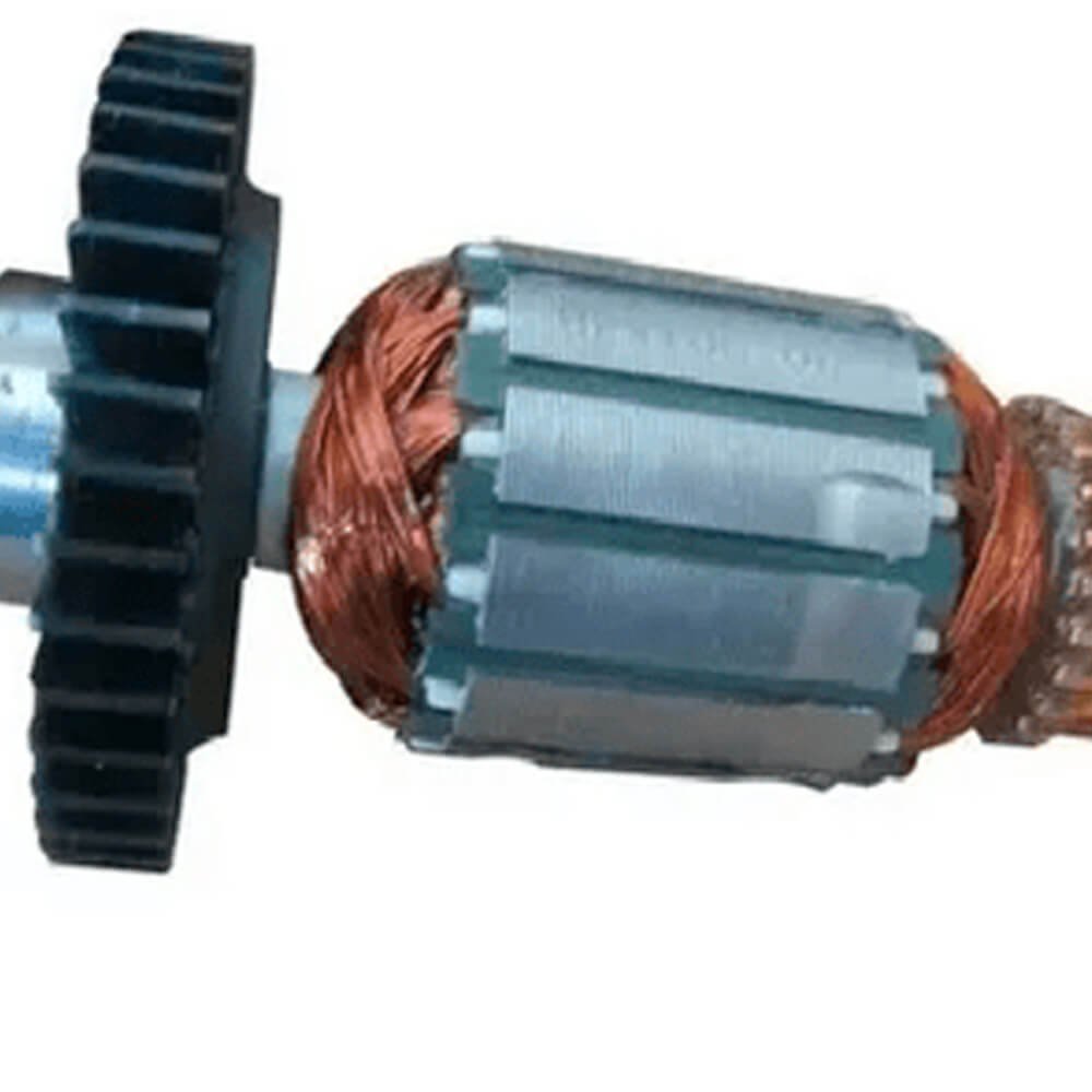 Induzido também conhecido como rotor, usado em conjunto com o estator ou bobina de campo, rolamentos e escovas de carvão.