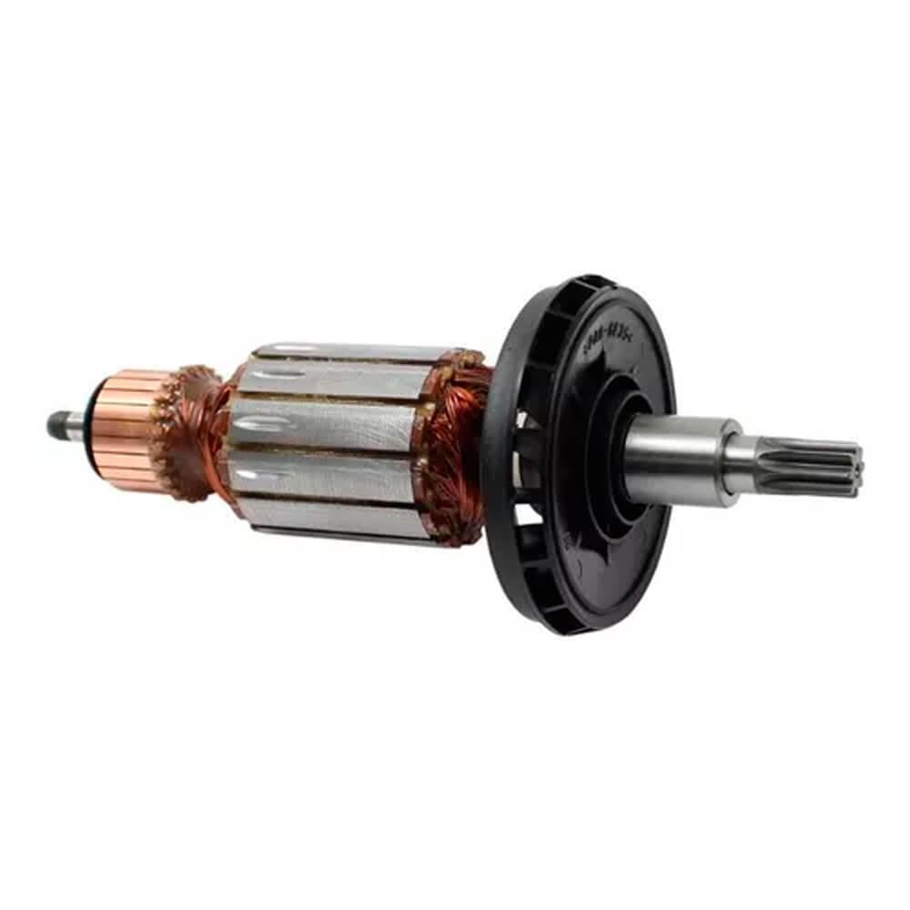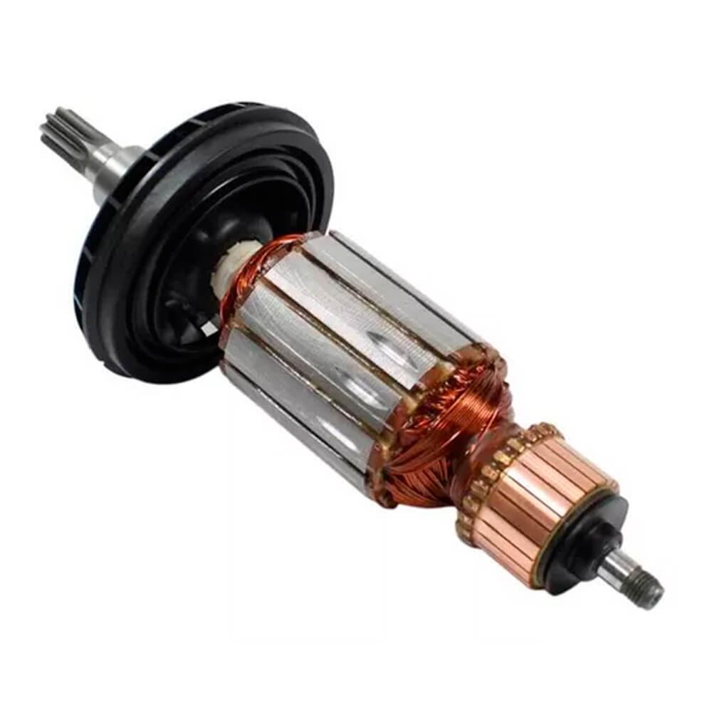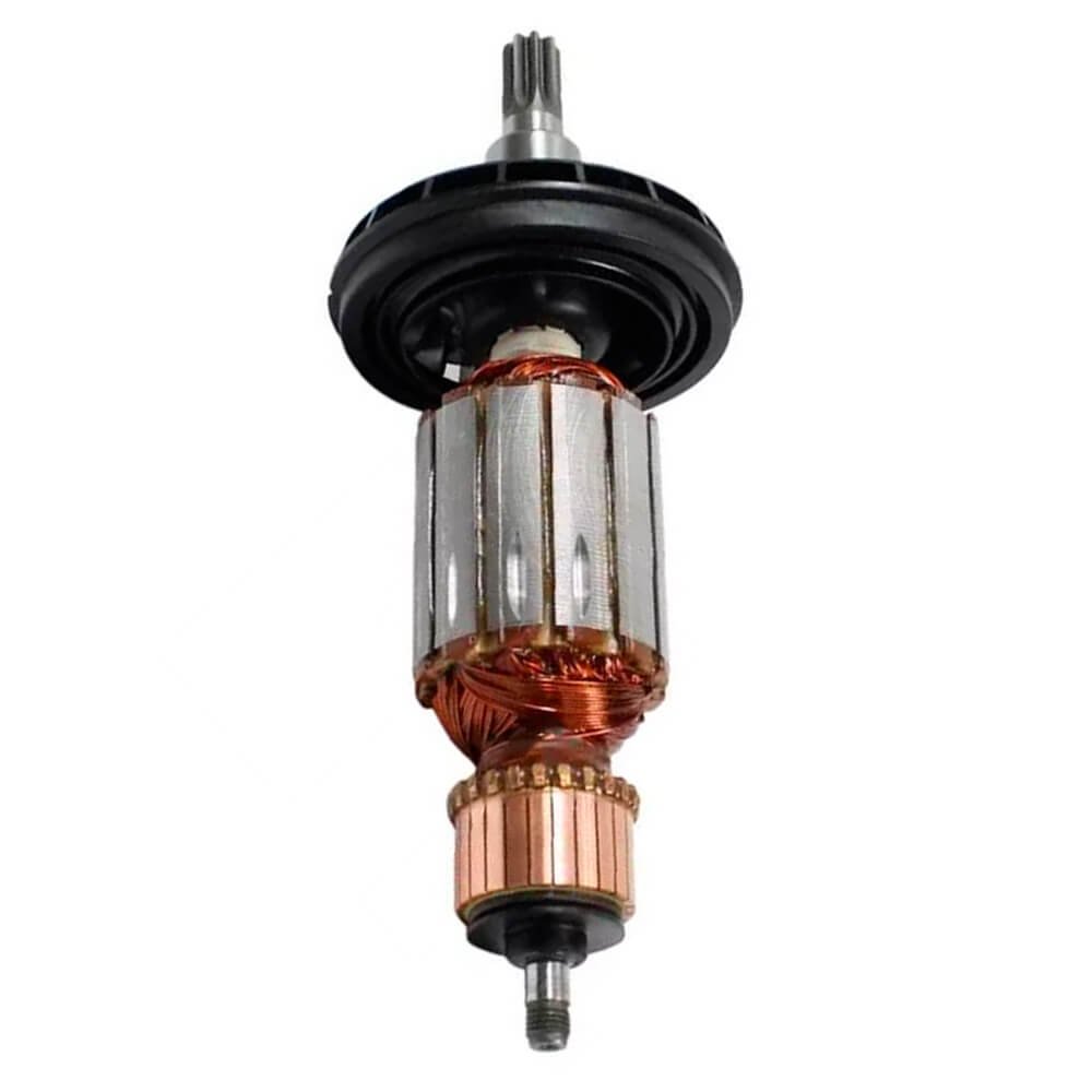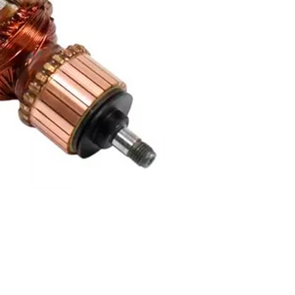 Induzido também conhecido como rotor, usado em conjunto com o estator ou bobina de campo, rolamentos e escovas de carvão.
