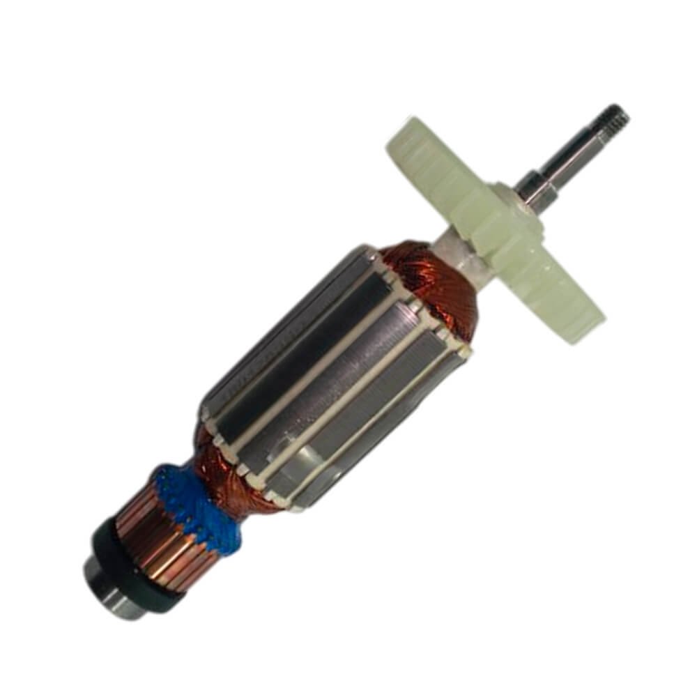 Induzido também conhecido como rotor, usado em conjunto com o estator ou bobina de campo, rolamentos e escovas de carvão.