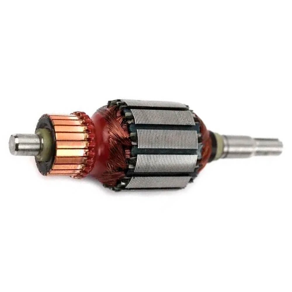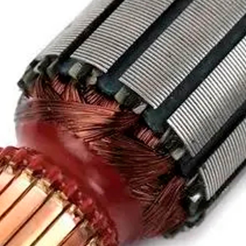 Induzido também conhecido como rotor, usado em conjunto com o estator ou bobina de campo e escovas de carvão.