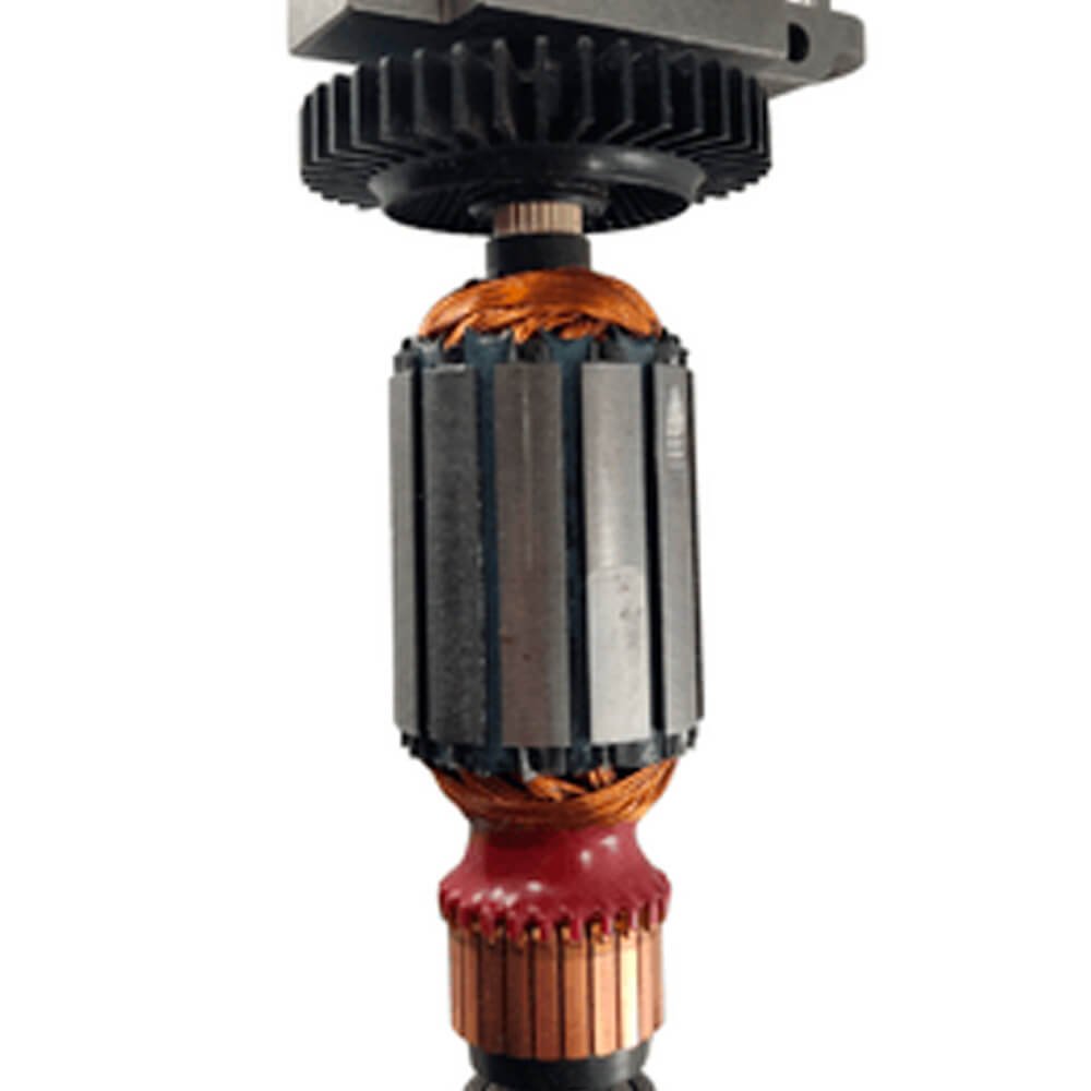 Induzido também conhecido como rotor, usado em conjunto com o estator ou bobina de campo, rolamentos e escovas de carvão.