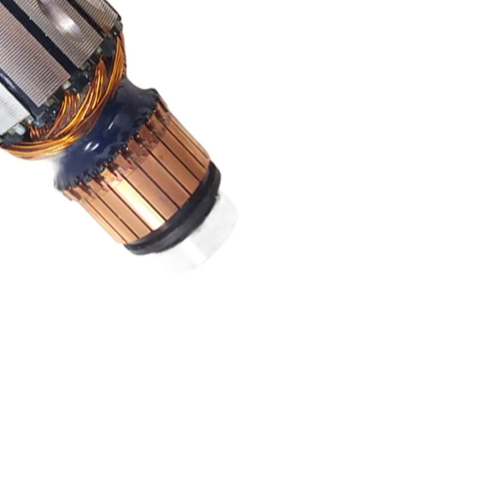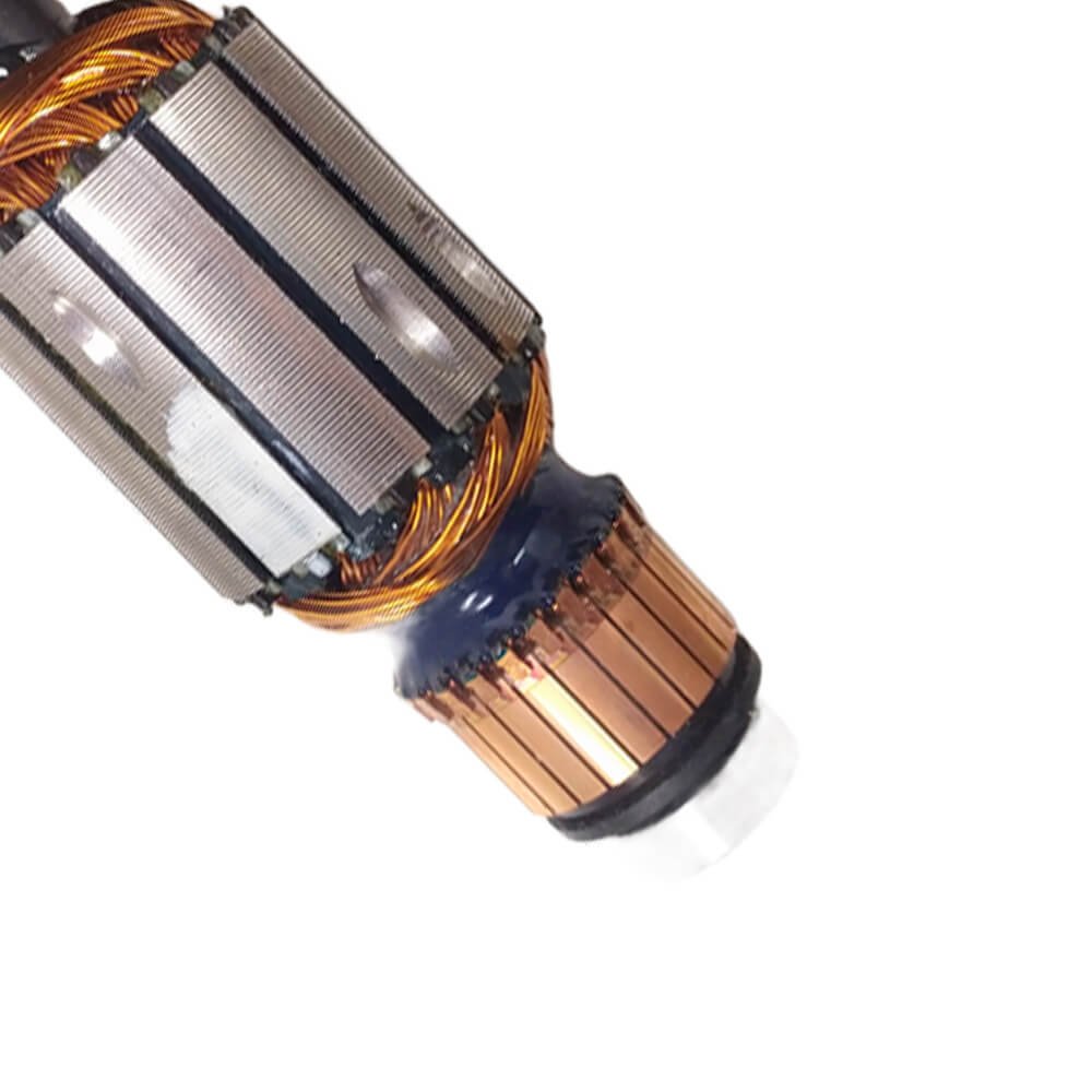 Induzido também conhecido como rotor, usado em conjunto com o estator ou bobina de campo, rolamentos e escovas de carvão.