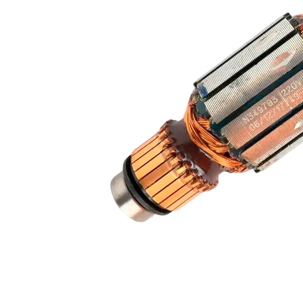 Induzido também conhecido como rotor, usado em conjunto com o estator ou bobina de campo, rolamentos e escovas de carvão.