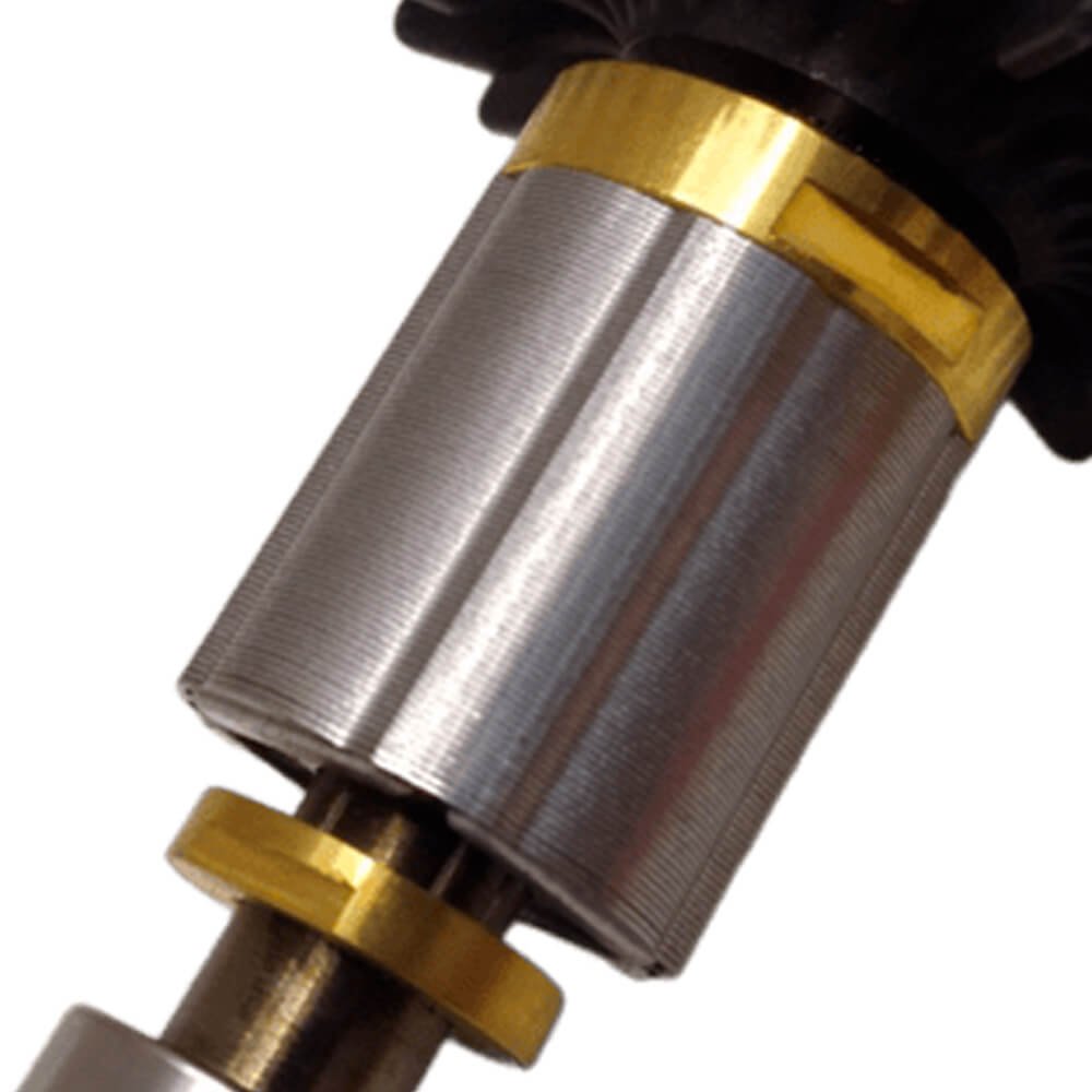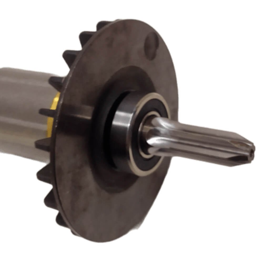 Induzido também conhecido como rotor, usado em conjunto com o estator ou bobina de campo, rolamentos e escovas de carvão.