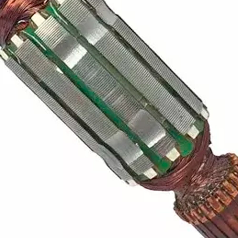 Induzido também conhecido como rotor, usado em conjunto com o estator ou bobina de campo e escovas de carvão.
