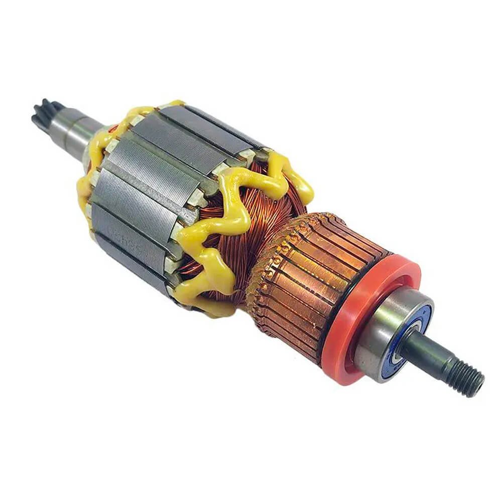 Induzido também conhecido como rotor, usado em conjunto com o estator ou bobina de campo e escovas de carvão.