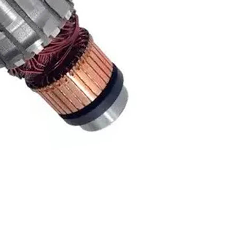 Induzido também conhecido como rotor, usado em conjunto com o estator ou bobina de campo, rolamentos e escovas de carvão