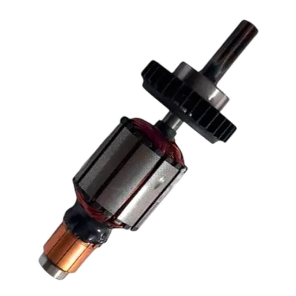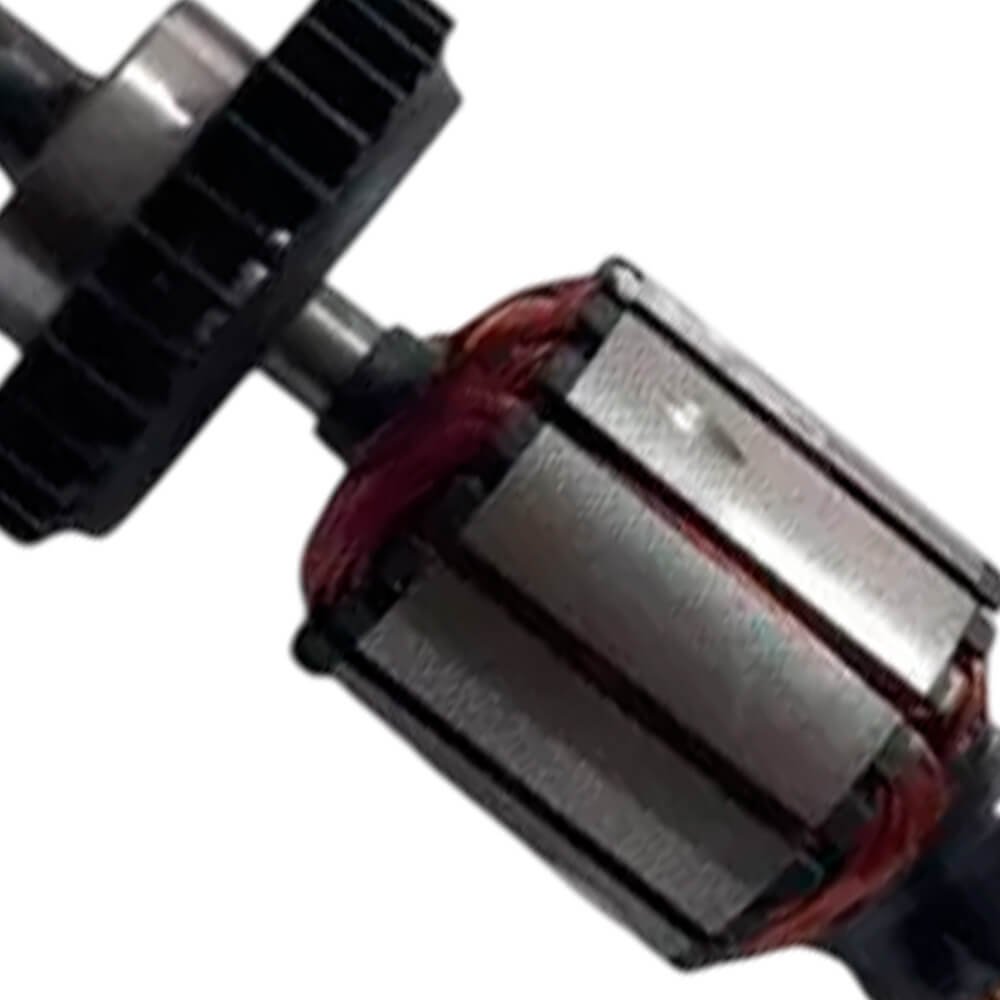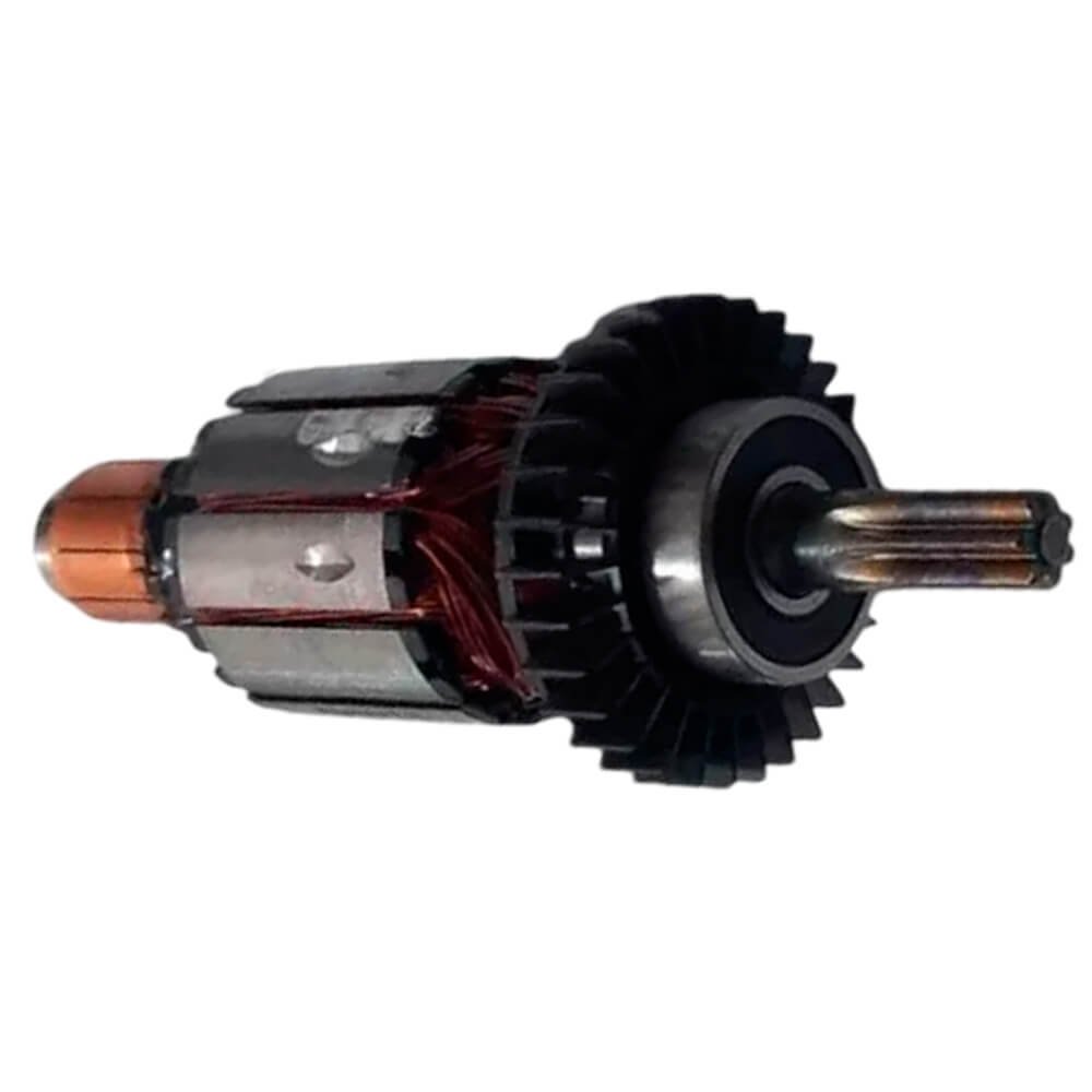 Induzido também conhecido como rotor, usado em conjunto com o estator ou bobina de campo, rolamentos e escovas de carvão.
