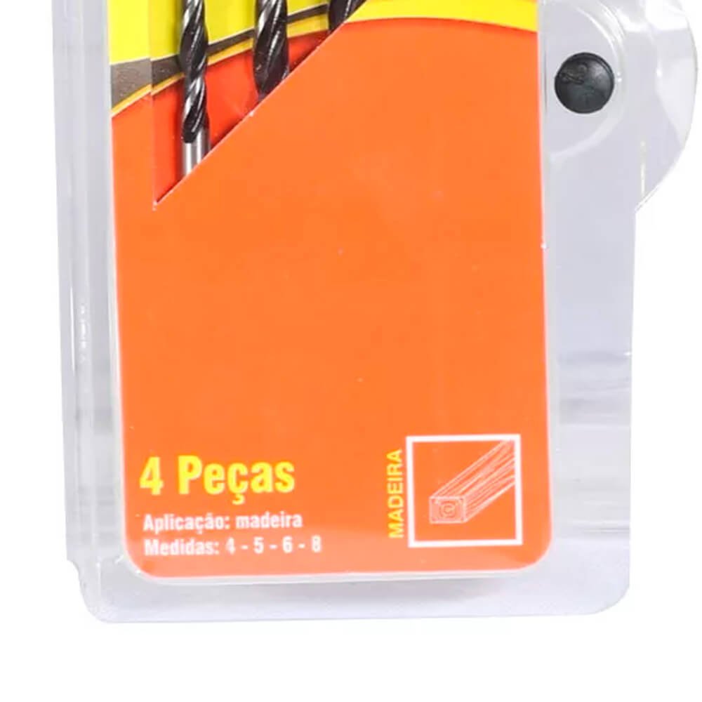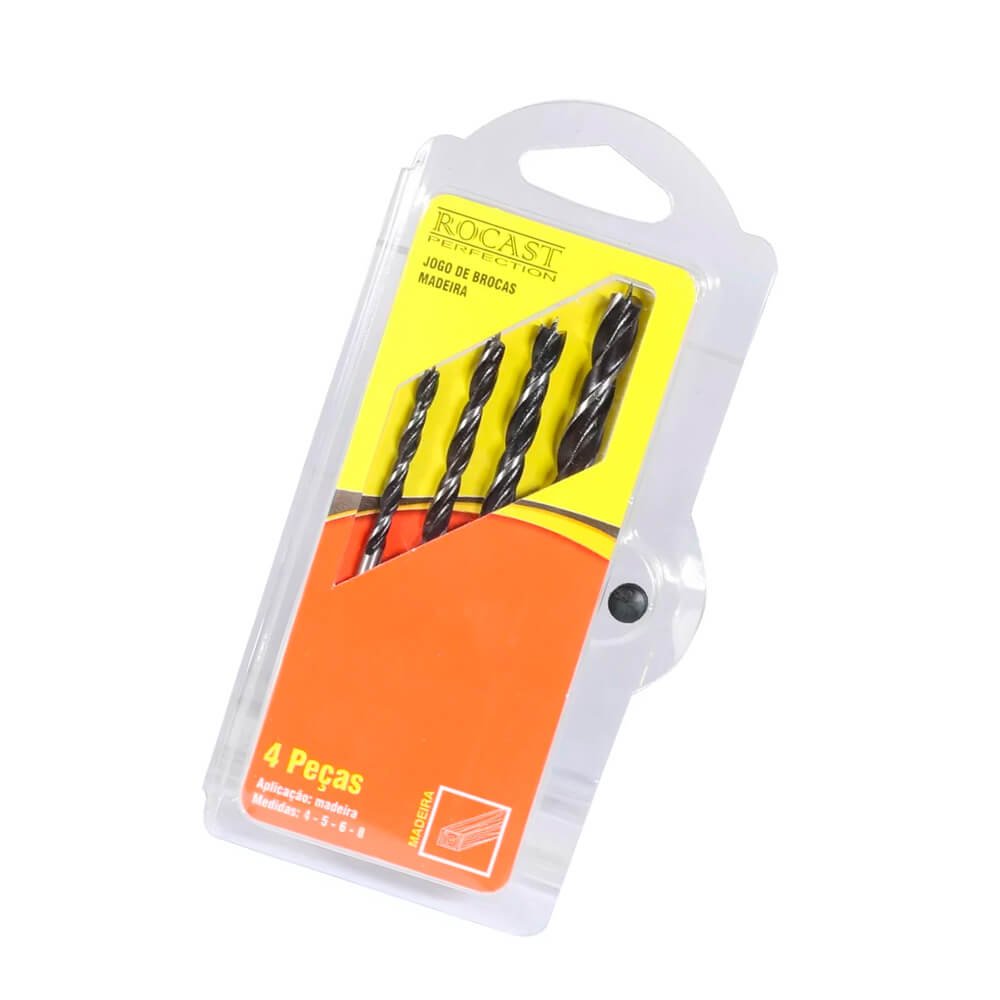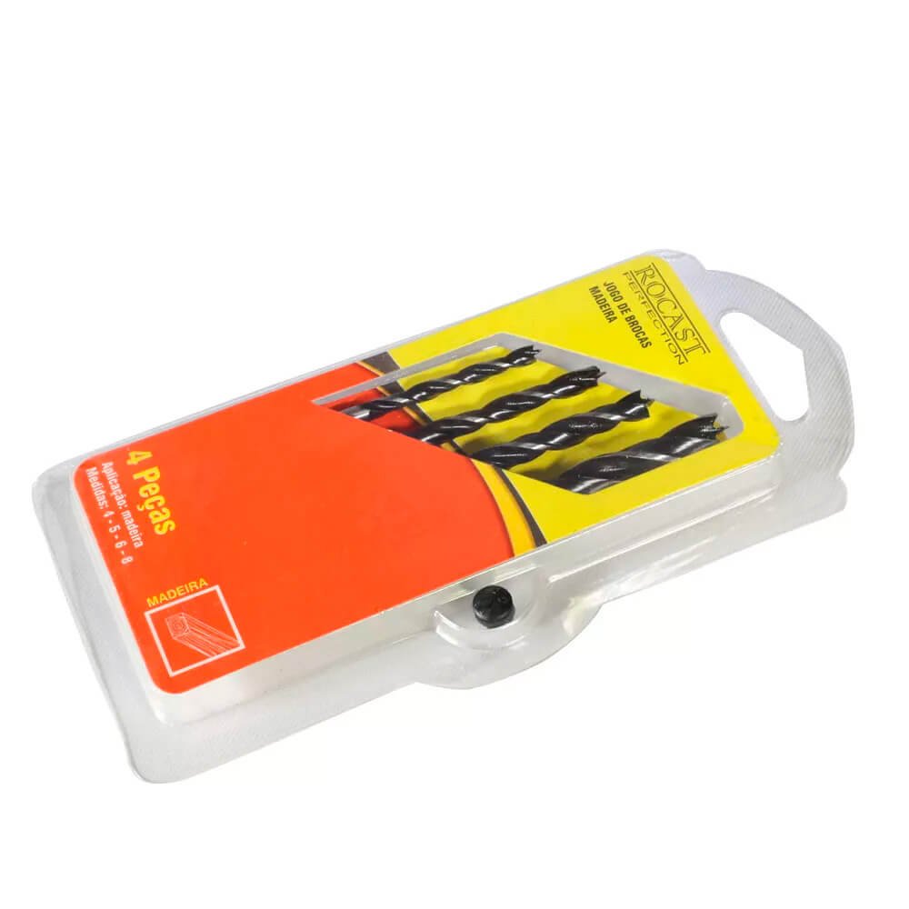 Jogo de Brocas 3 Pontas para Madeira 4 peças (4.0 a 8.0mm) - Rocast