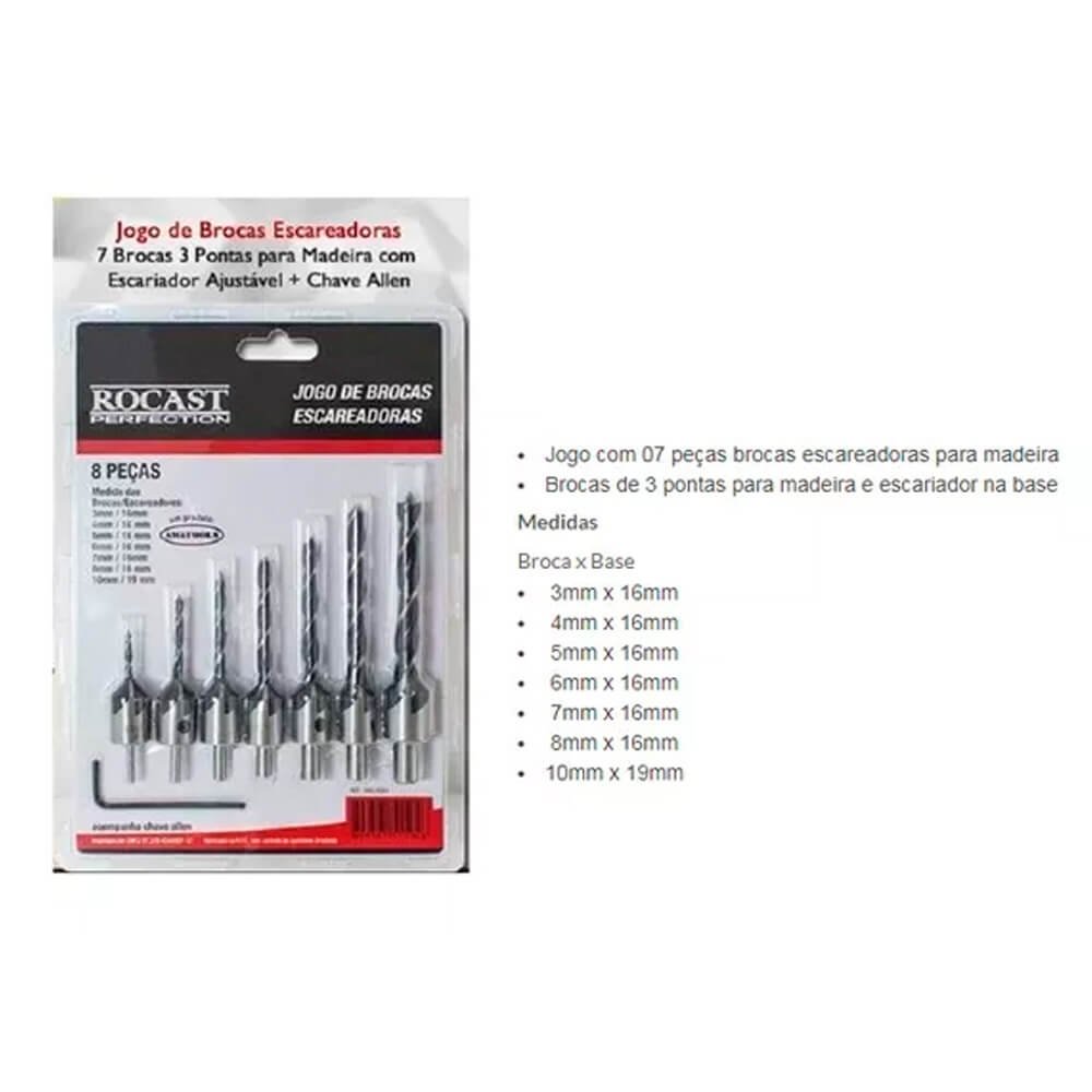 Jogo de Brocas Escareadoras para Madeira