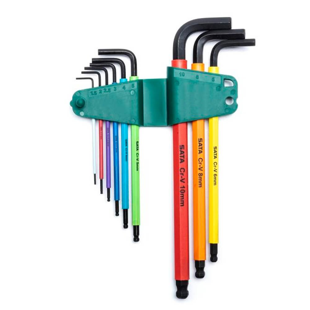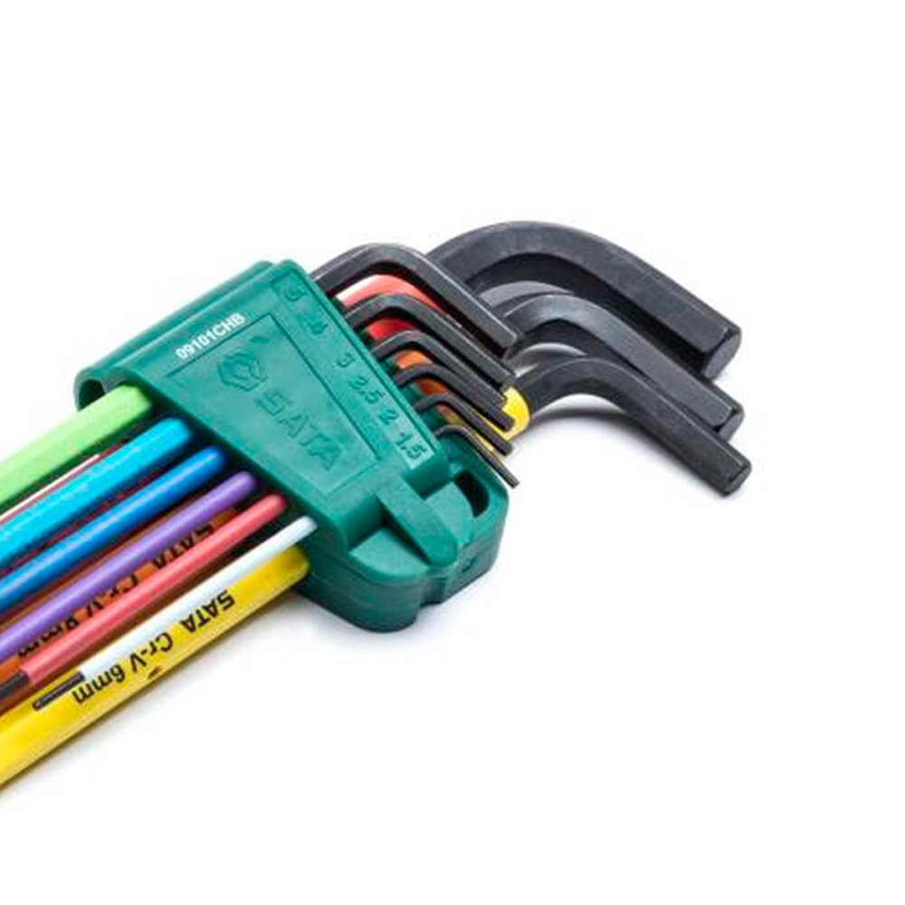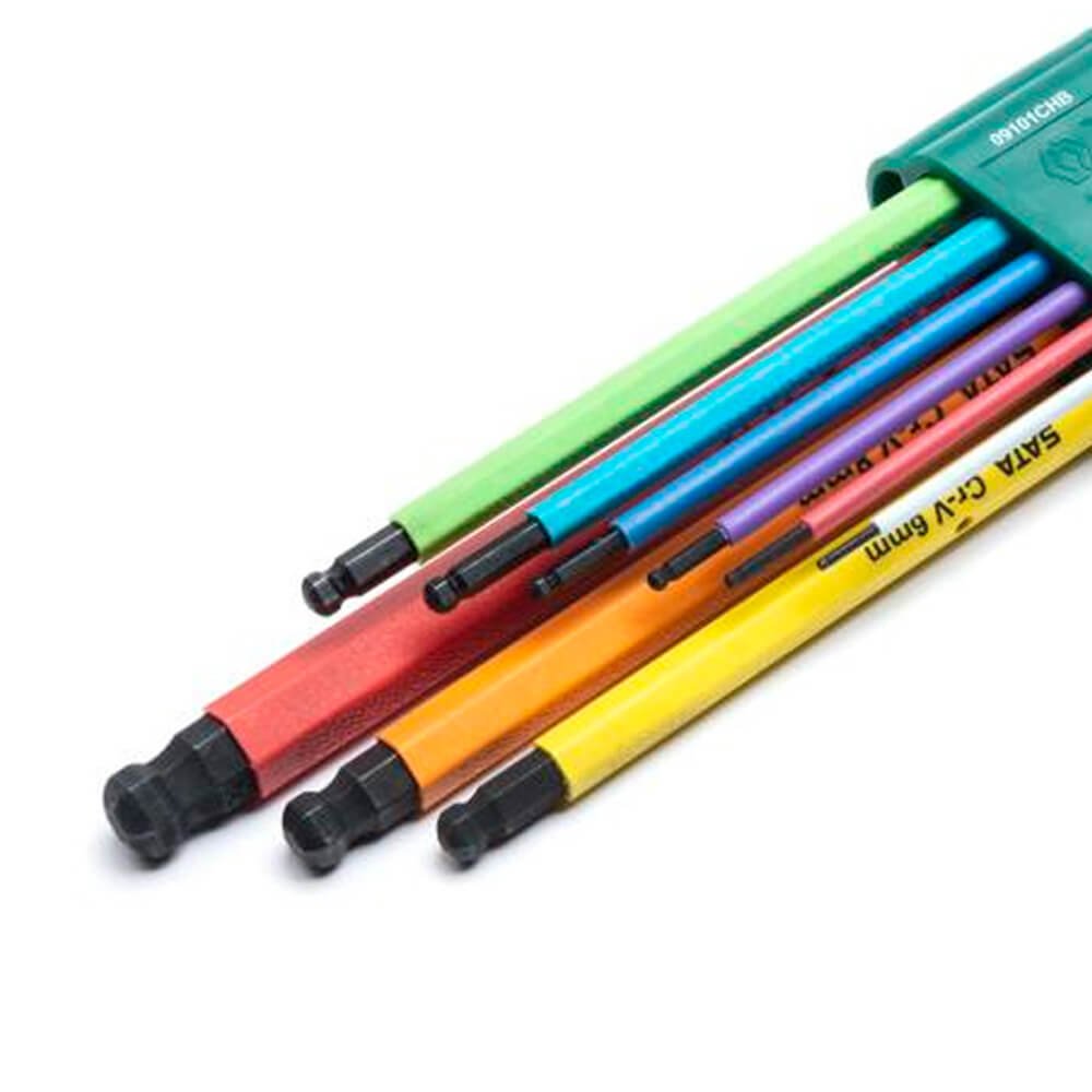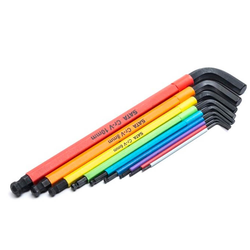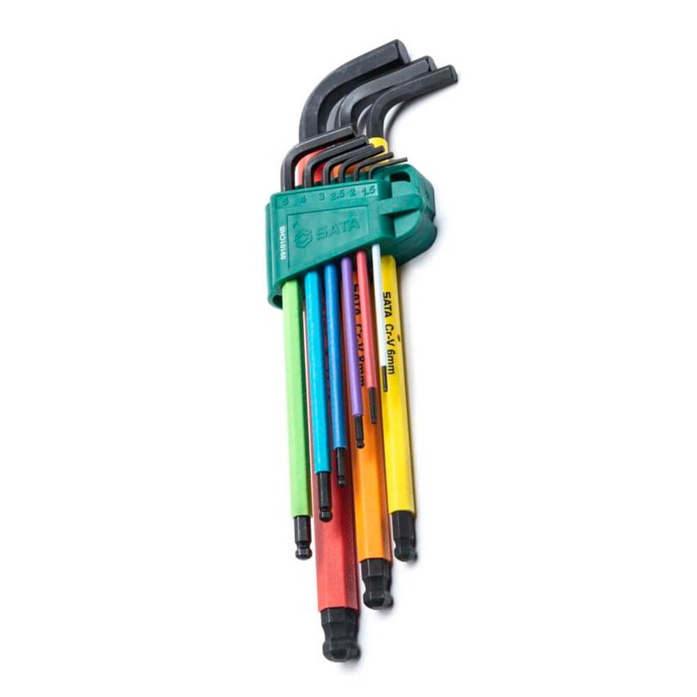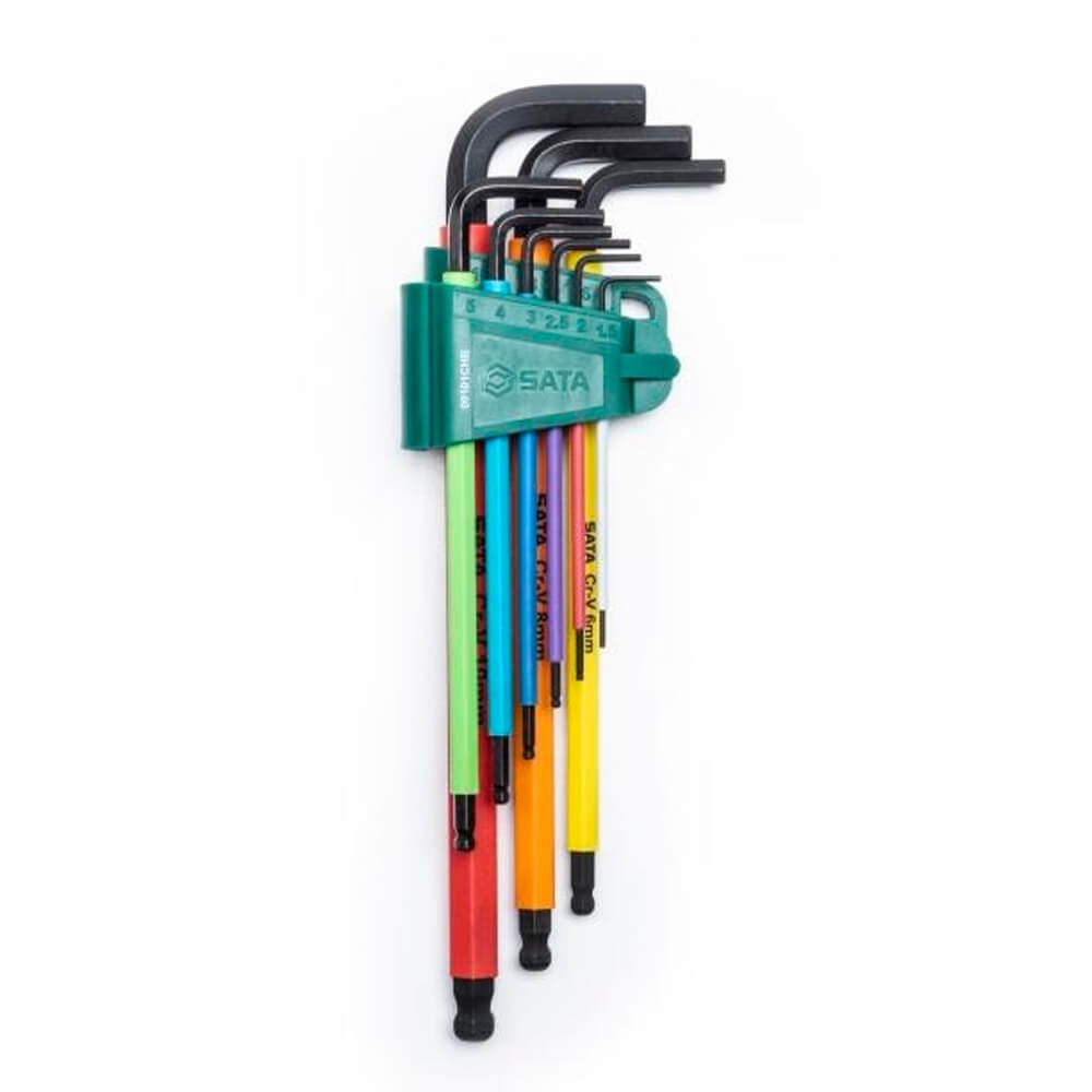 Jogo de Chave Allen Longa Color Hexagonal Abaulada 9 peças - Sata