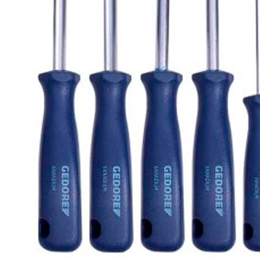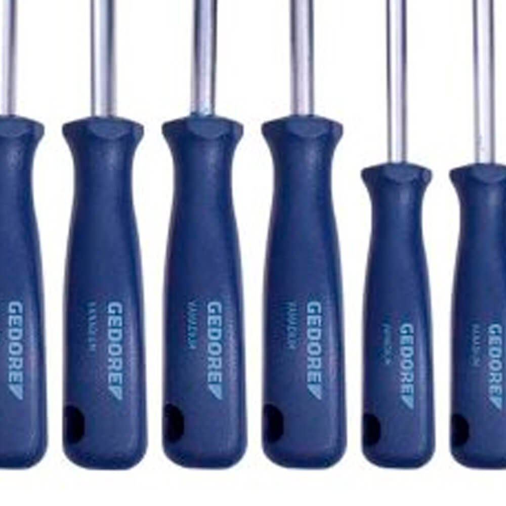 - Cabo ergonômico em polímero na cor azul padrão Gedore;