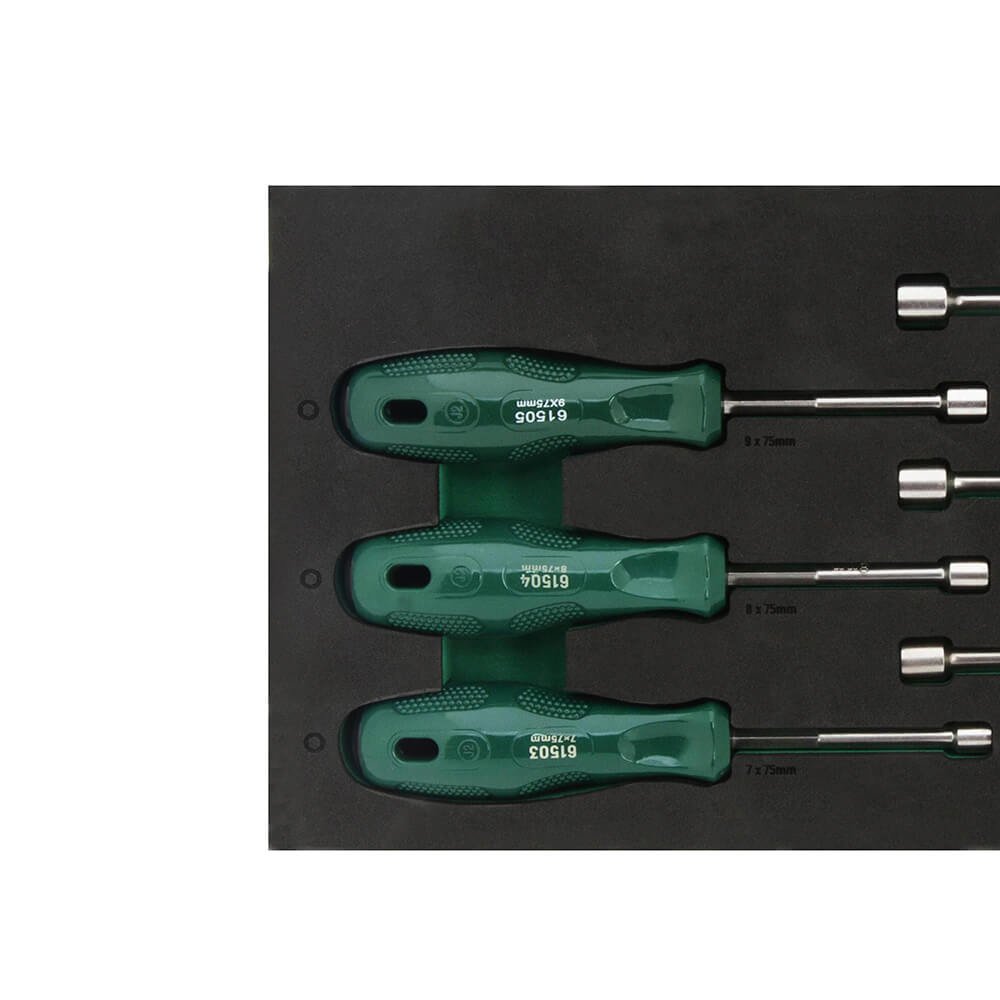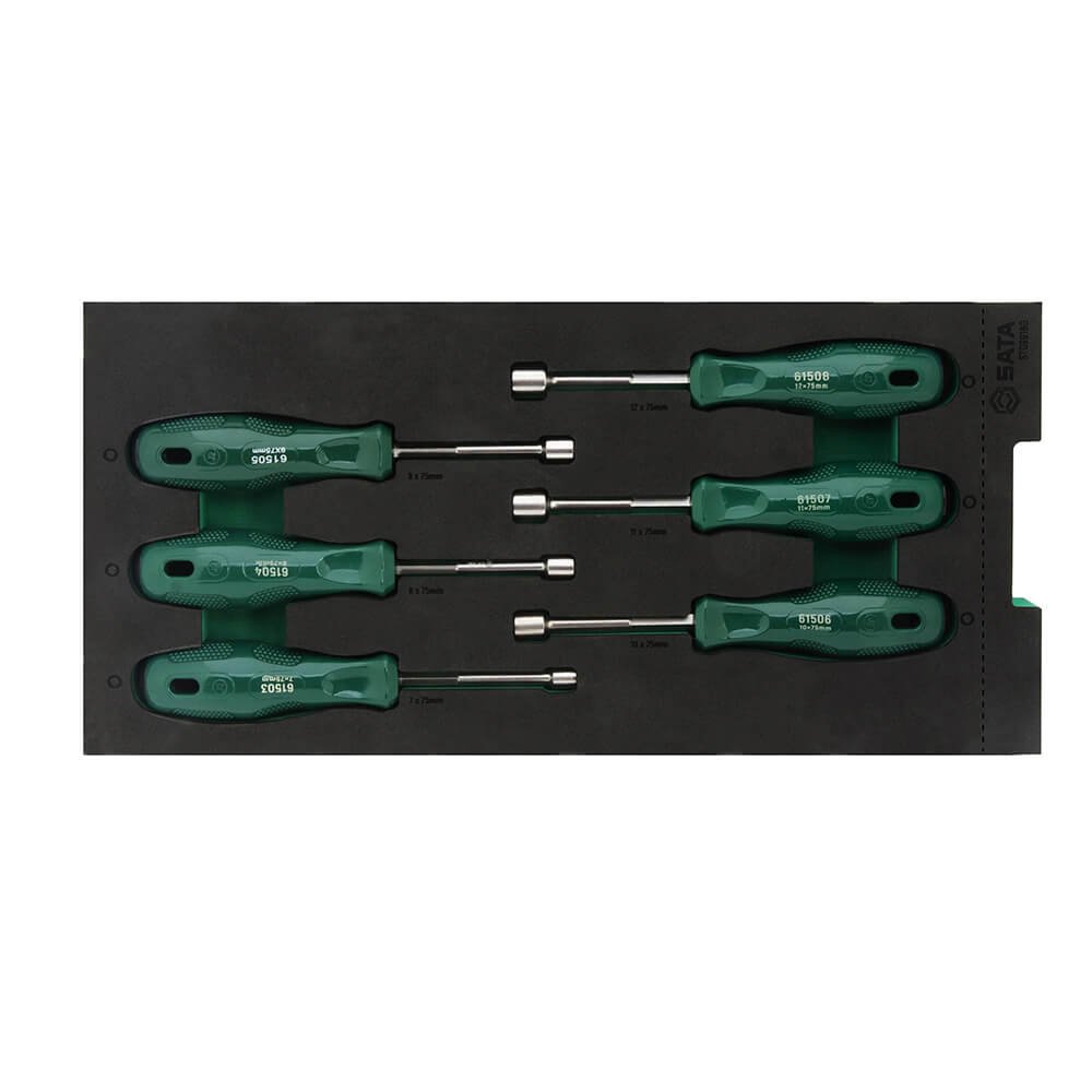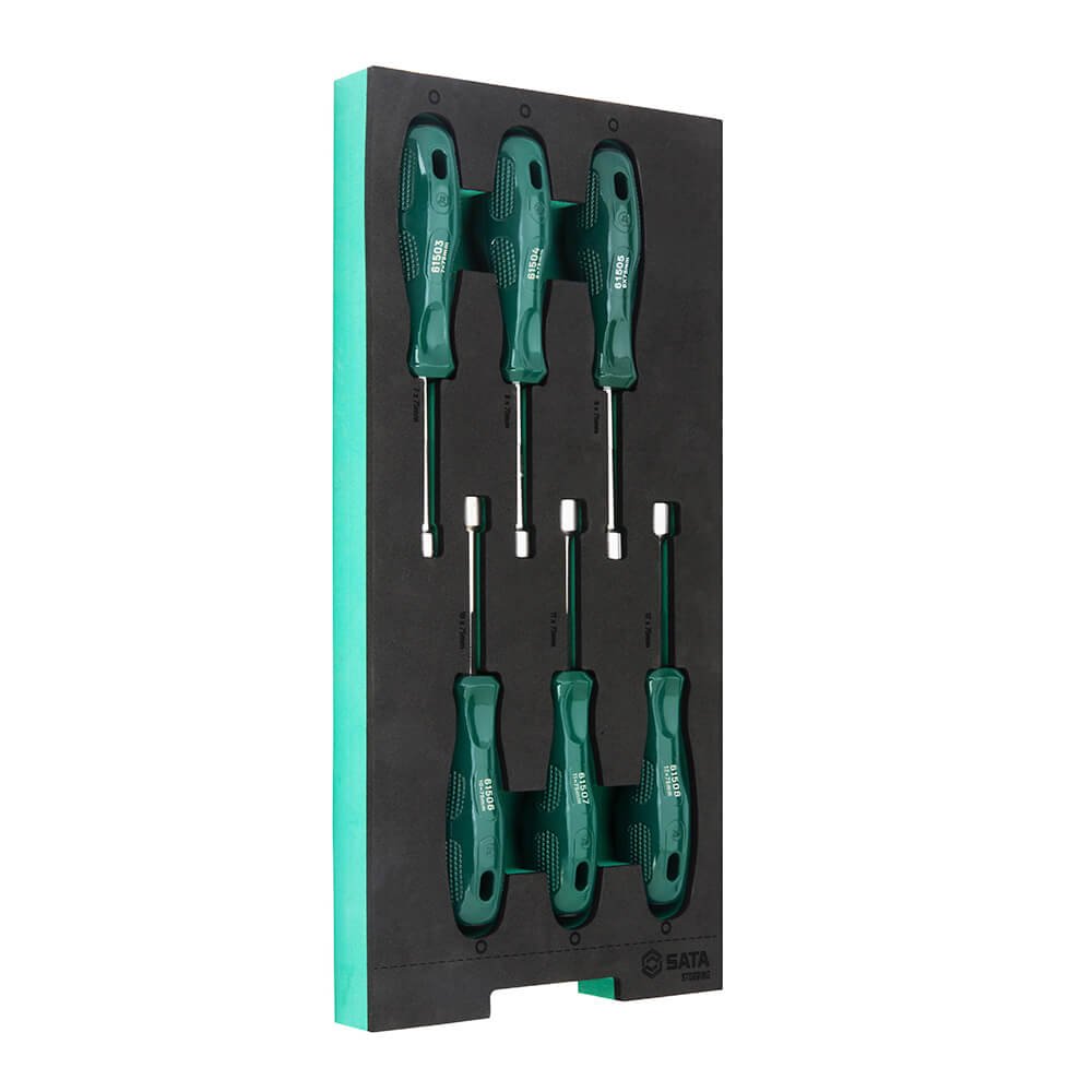 O Jogo de Chaves Canhão com 6 Peças em Berço de EVA Sata foi desenvolvido para profissionais que buscam desempenho, organização e praticidade em suas rotinas de trabalho. Oferece precisão e eficiência em aplicações mecânicas e de manutenção. Com um design modular e intercambiável, os berços EVA permitem personalizar as gavetas de acordo com as suas preferências, garantindo flexibilidade para adicionar novos conjuntos e transferi-los entre diferentes carros de ferramentas* sempre que necessário. Além disso, são acompanhados de ferramentas funcionais, inovadoras e de alta qualidade, reconhecidas pela durabilidade e resistência que só SATA oferece.