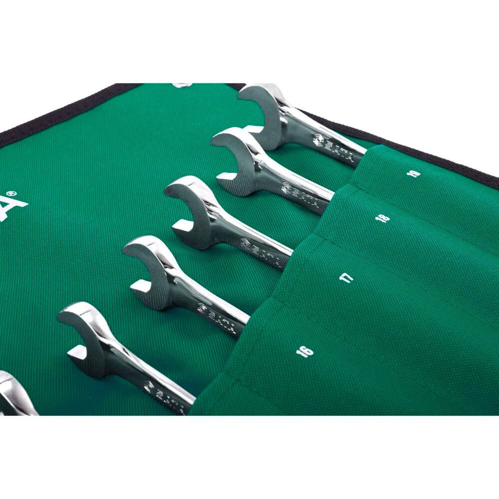 Jogo de chaves combinadas invertidas com catraca é indicado para aperto e desaperto de porcas e parafusos de maneira prática, reduzindo o esforço. Fabricado em aço cromo vanádio oferecendo maior resistência e durabilidade. Conta com acabamento polido, cromado facilitando a limpeza das peças. Catraca de 72 dentes com arco de aperto de 5° para apertos mais precisos; Boca catraca aperta ou desaperta porcas e parafusos sem precisar retirar a chave do ponto de fixação;