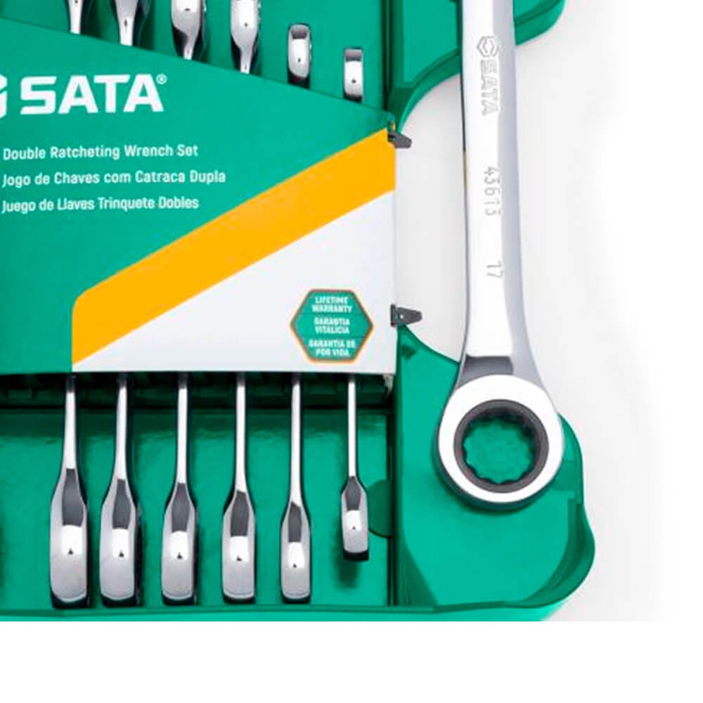 É a combinação perfeita, oferece facilidade e o torque com a velocidade da catraca que você precisa. Seu estojo é diferenciado, permite ser pendurado em seu painel de ferramentas ou mesmo na parede, além de acomodar com segurança todas as chaves do kit. As ferramentas deste jogo fazem parte do Programa de Garantia Vitalícia SATA contra defeitos de fabricação, seu estojo possui garantia de nominal 3 meses a contar da data de compra.