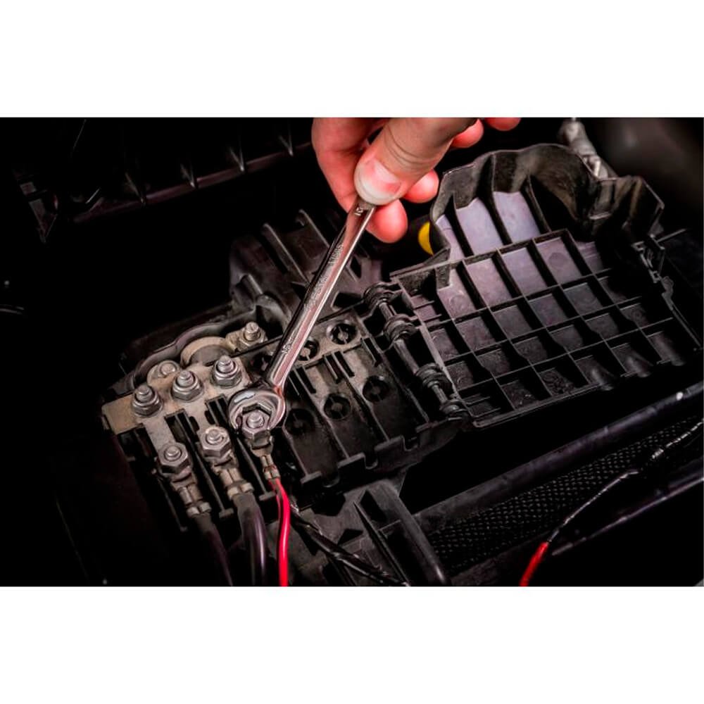 - Catraca de 72 dentes com arco de aperto de 5° para apertos mais precisos contra 30° na chave estrela comum