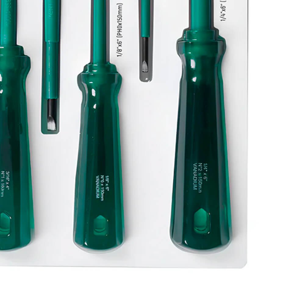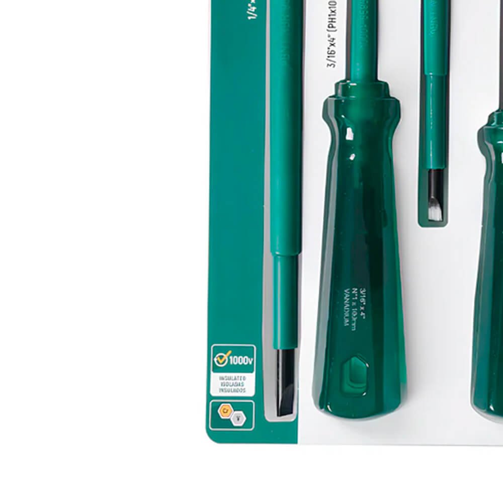 O Jogo de Chaves Fenda e Phillips Isoladas 6 peças St08041l SATA é o mix essencial de chaves retas para os profissionais que prezam pela segurança e qualidade em seu trabalho. Seu acabamento niquelado e cromado e sua ponta oxidada oferece mais resistência contra descascamento e proporciona maior segurança e resistência ao usuário. Seu cabo ergonômico e antideslizante facilita o ajuste das mãos e aumenta o torque durante o uso.