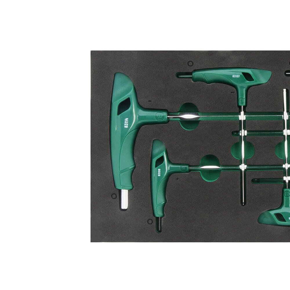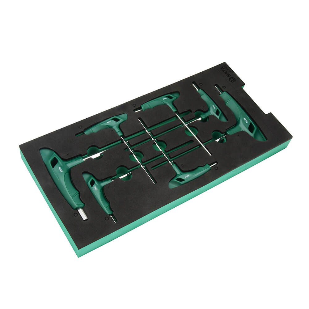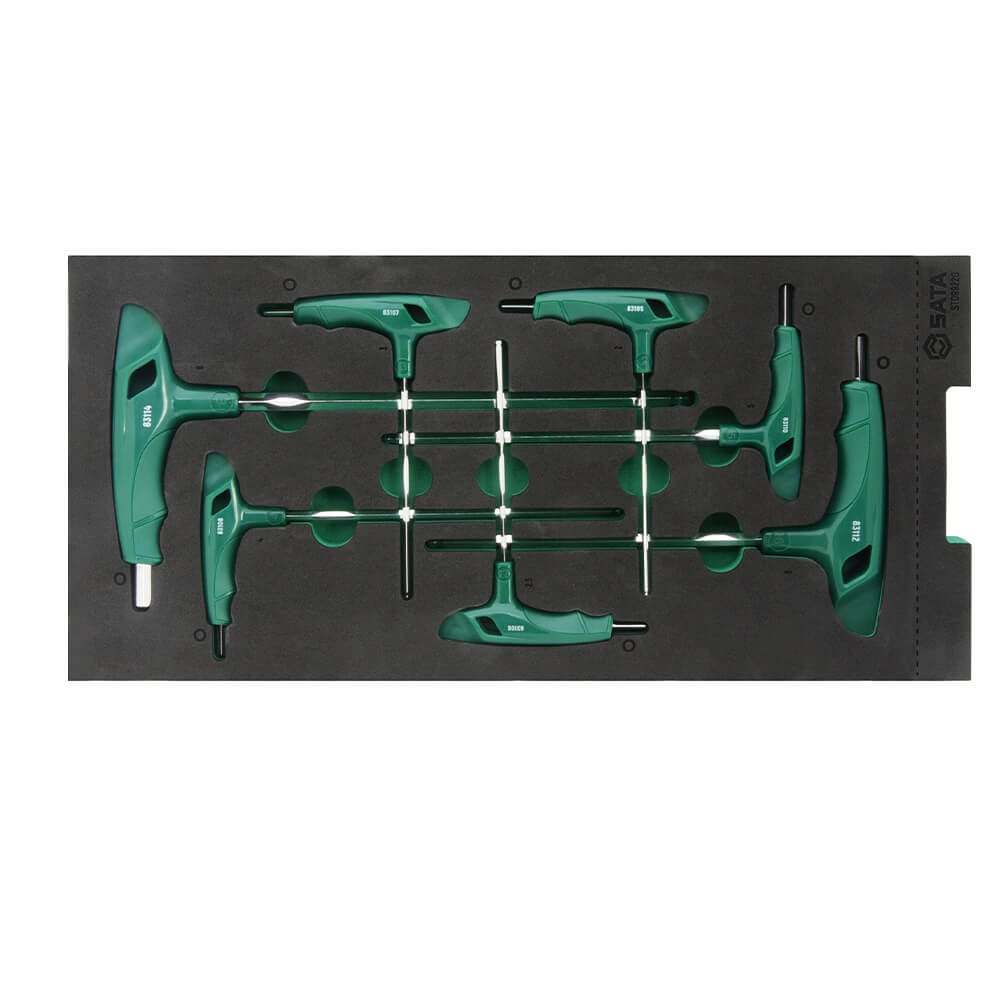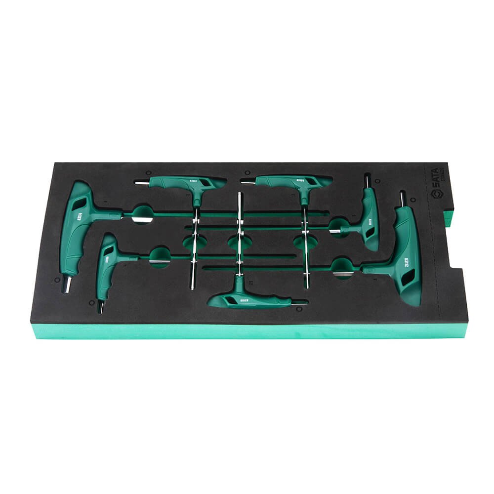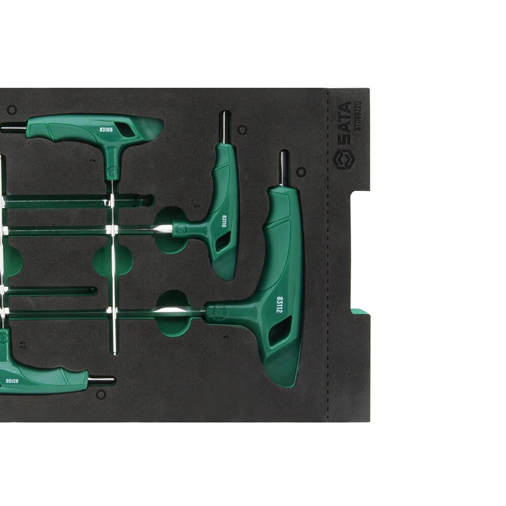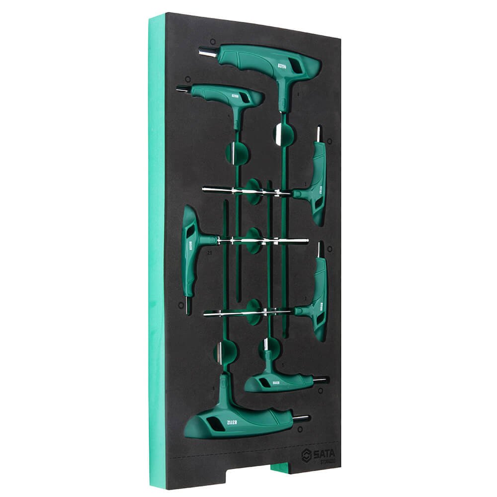 O Jogo De Chaves Hexagonais Cabo T com 7 Peças Em Berço EVA SATA oferece praticidade e conforto para apertos e desapertos com torque elevado. Desenvolvidos com um design modular e intercambiável, os berços EVA permitem personalizar as gavetas de acordo com as suas preferências, garantindo flexibilidade para adicionar novos conjuntos e transferi-los entre diferentes carros de ferramentas* sempre que necessário. Além disso, são acompanhados de ferramentas funcionais, inovadoras e de alta qualidade, reconhecidas pela durabilidade e resistência que só SATA oferece.