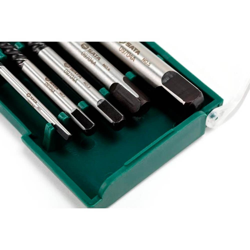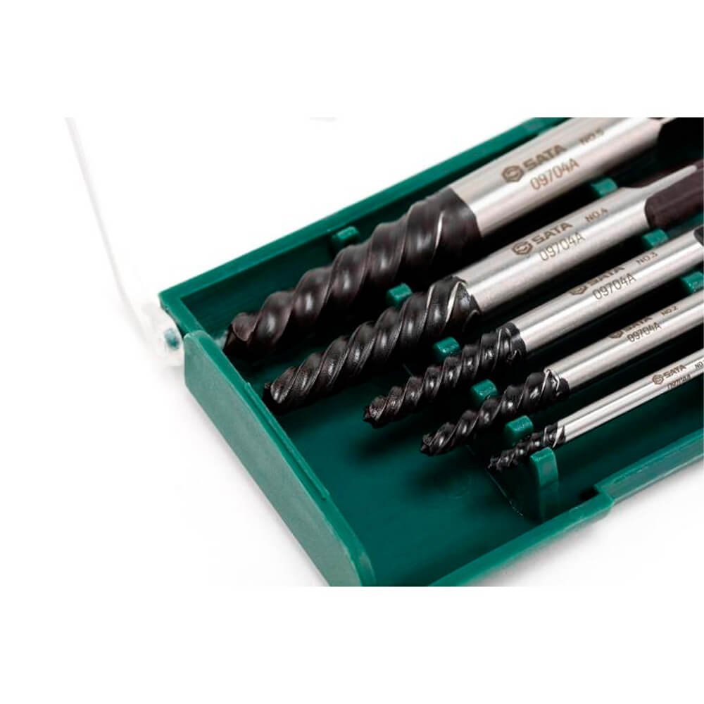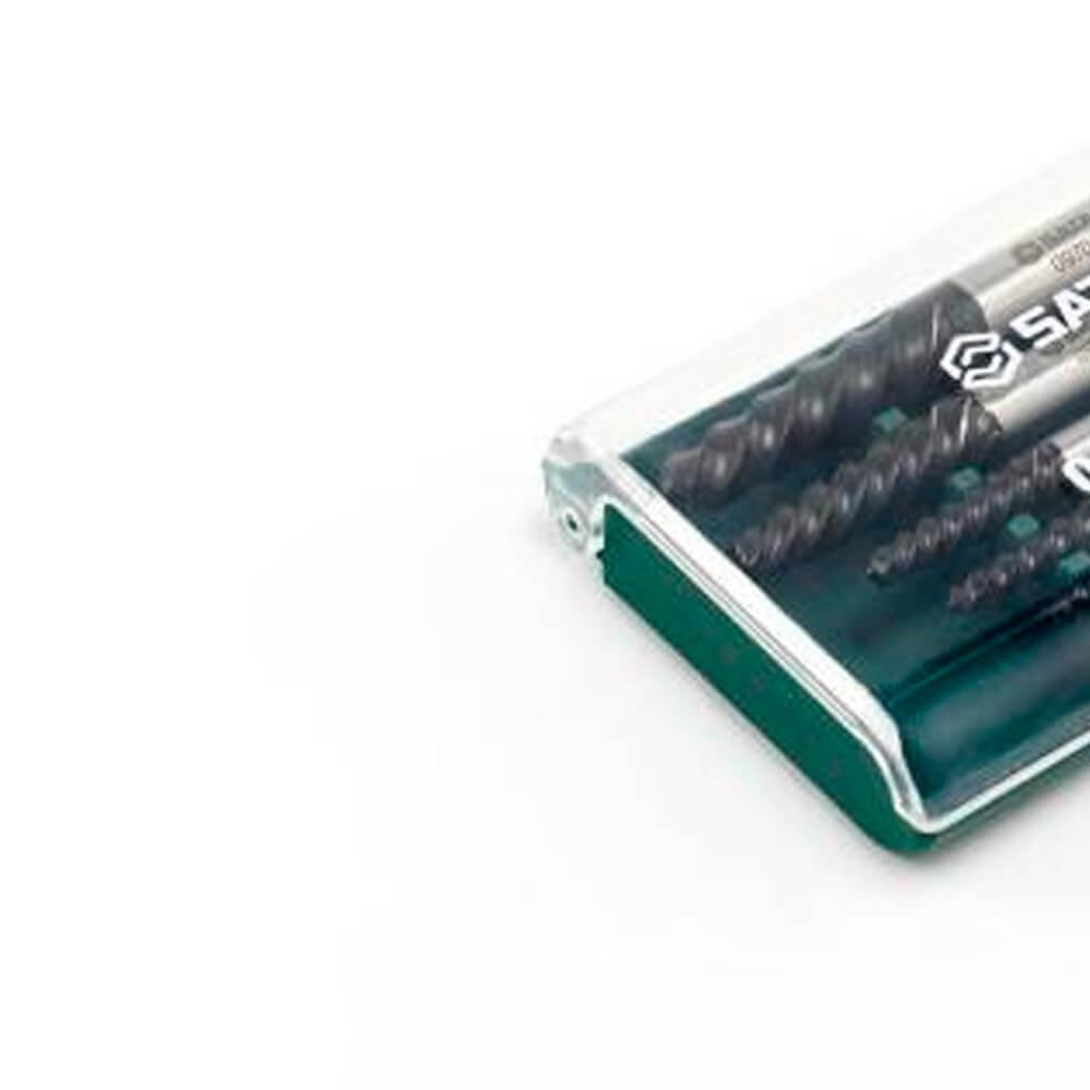 Utilizado para remoção de parafusos quebrados e prisioneiros com rosca. Indispensável para profissionais mecanicos, seu uso é bem simples, basta com uma pulsão fazer um furo inicial na cabeça do parafuso, fazer um furo com uma broca e utilizar o extrator com o auxílio de uma parafusadeira sendo o mesmo da mesma bitola que a broca.A função deste jogo extrator de parafusos, é soltar, extrair, remover ou trocar o prisioneiro, que por ventura sofra uma avaria, quebrando ou perdendo a rosca externa. Jogo com 5 peças nas medidas de Nº 1 x 54mm, indicado para extração de parafusos das medidas M3-M6 e 1/8"-1/4"; Nº 2 x 58mm, indicado para extração de parafusos das medidas M6-M8 e 1/4"-5/16"; Nº 3 x 61mm, indicado para extração de parafusos das medidas M8-M10 e 5/16"-3/8"; Nº 4 x 75mm, indicado para extração de parafusos das medidas M10-M14 e 3/8"-9/16"; Nº 5 x 84mm, indicado para extração de parafusos das medidas M14-M18 e 9/16"-3/4"".