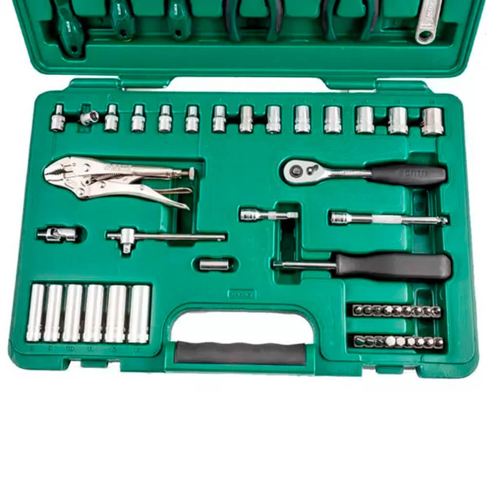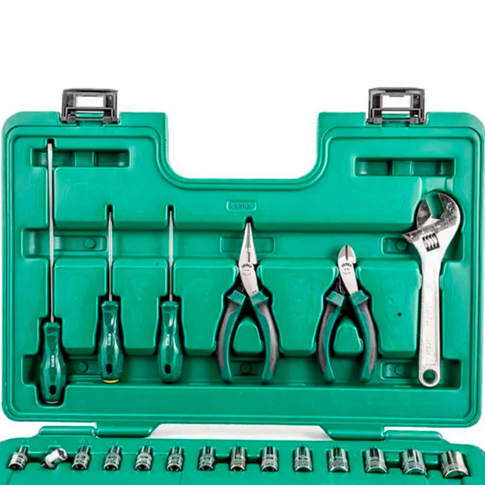 O mix ideal para profissionais exigentes com os detalhes e garantia no serviço. As ferramentas deste jogo vão superar suas expectativas, e você também irá encontrar neste jogo: Chave Ajustável, Alicates, Chaves Retas, Pontas Bits e Soquetes Longos. Jogo profissional com qualidade superior, fabricado em material resistente que oferece durabilidade e confiança para o trabalho diário. Sua maleta organizadora facilita o transporte, armazenamento e principalmente a facilidade para encontrar a ferramenta ideal para o trabalho.