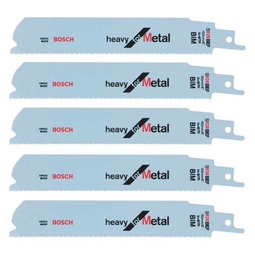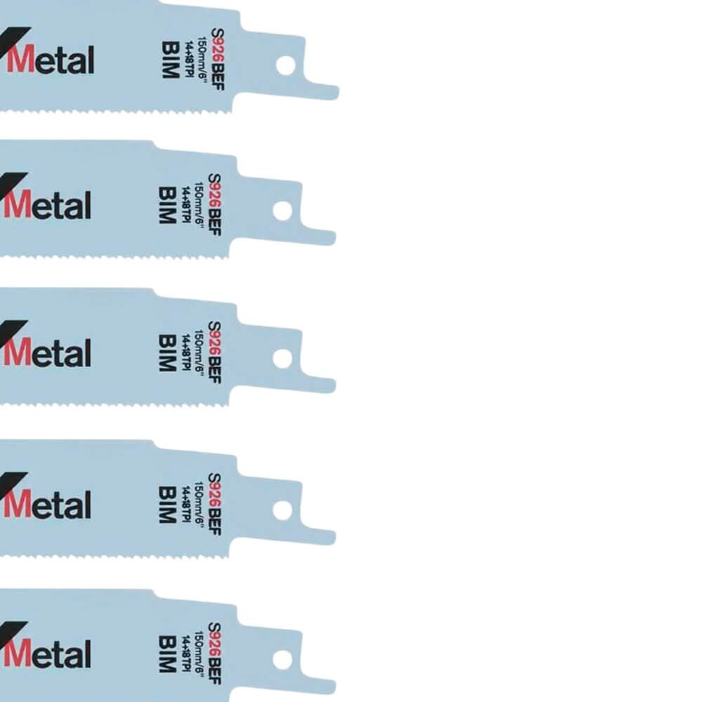 A lâmina de serra sabre S926BEF Heavy for Metal efetua cortes retos, lisos e precisos em metal. O corpo largo (25 mm) combinado com o material da base grosso (1,1 mm) torna possível o corte reto de precisão. Além disso, permite trabalhar sem esforço graças à geometria do passo dos dentes fino 2x2 patenteada da lâmina. Feita da liga bimetálica (BIM), a tira de dentes em aço rápido endurecido (HSS), especialmente formulada, está ligada a um corpo de aço carbono (HCS) muito flexível, otimizada para cortar materiais em aço de resistência regular em aplicações de demolição e é ideal para cortar materiais em aço.