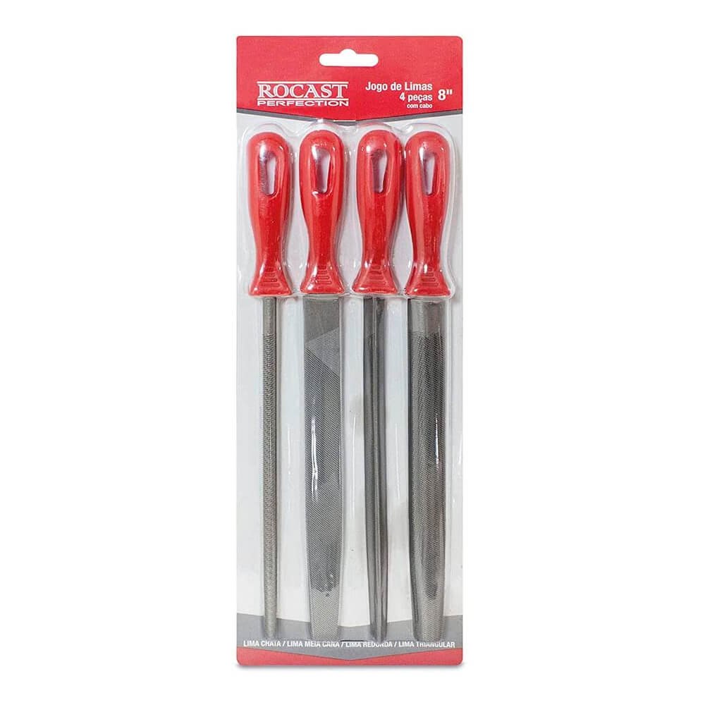 O Jogo de Lima Murça da Rocast é ideal para quem busca uma ferramenta manual para efetuar com qualidade o desbaste de metais em superfícies planas. Nele está contido 4 limas de 8 polegadas cada, nos modelos: Redonda, Chata, Triangular, Meia-Cana sendo todas murças.
