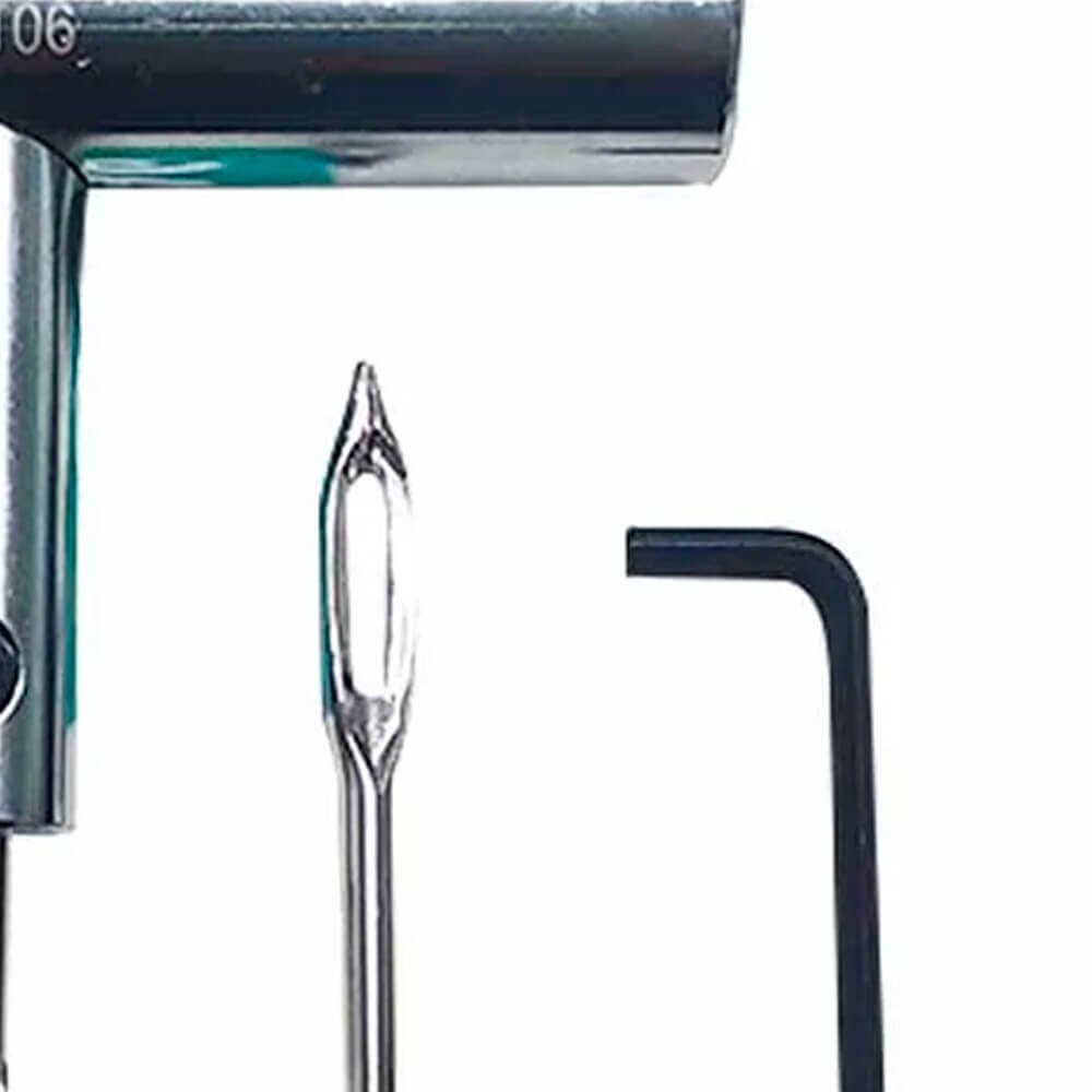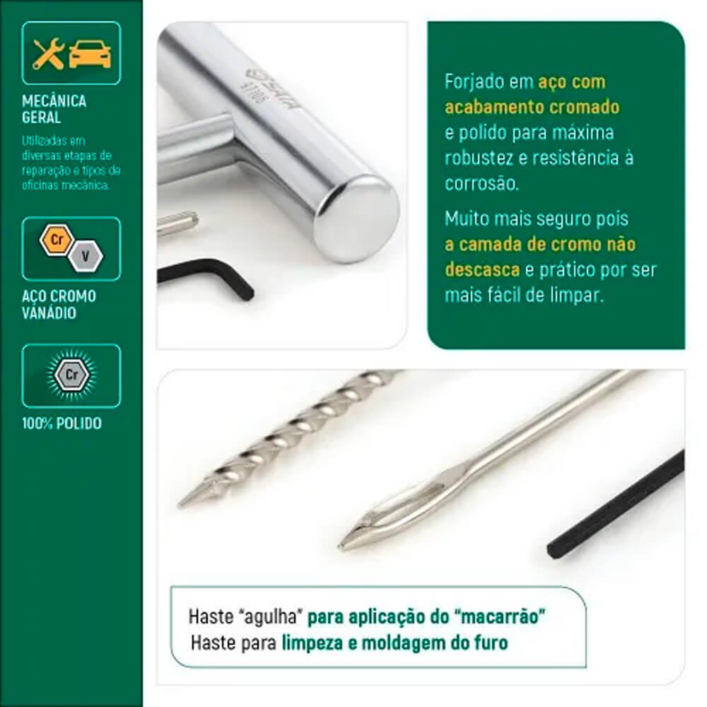 Indicado para consertos/reparos de pneus sem câmara, mais facilidade e praticidade no conserto de pneus sem câmara. Tanto a agulha de preparação quanto a agulha de aplicação podem ser trocadas em caso de desgaste.
