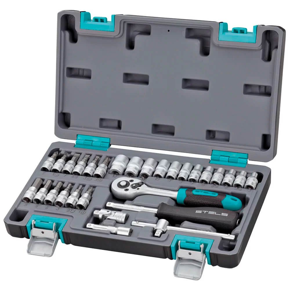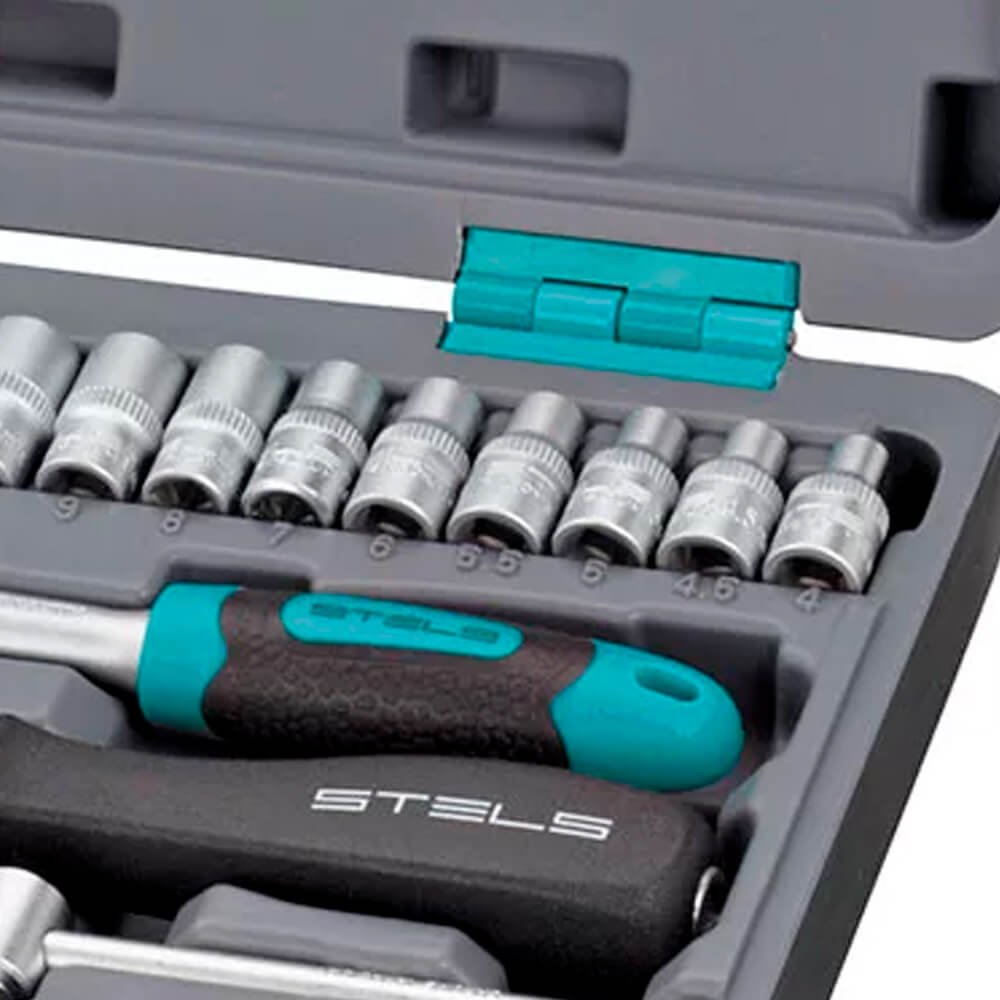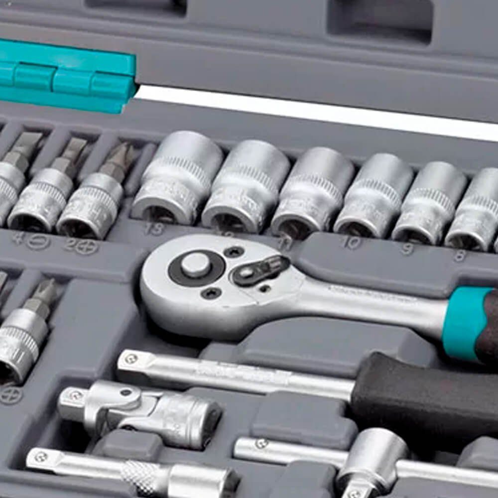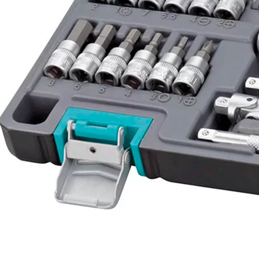 O jogo de soquetes e acesórios é composto por 29 peças de excelente qualidade em aço cromo vanádio, proporcionando maior durabilidade e resistência. Acompanha estojo de plástico para armazenamento das ferramentas.