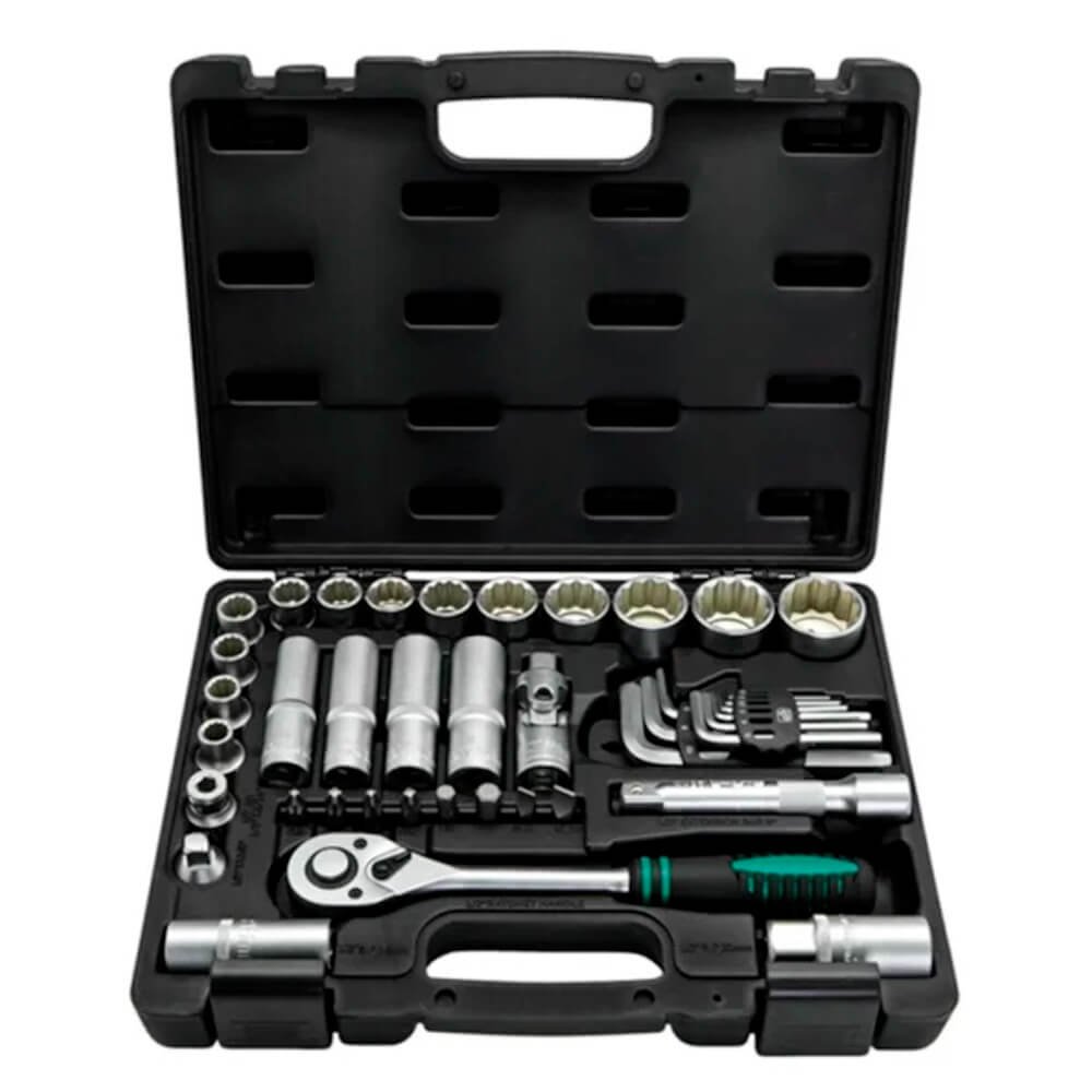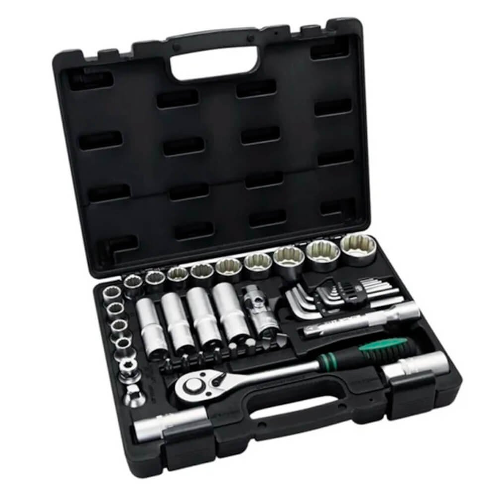 O Jogo de Soquetes da STELS foi desenvolvido apertar e afrouxar parafusos com diferentes bitolas/tamanhos; Conta com 41 Peças que podem ser levadas para onde desejar; As ferramentas são apresentadas em uma maleta plástica muito resistente com estojo especial indicando o lugar de cada uma;