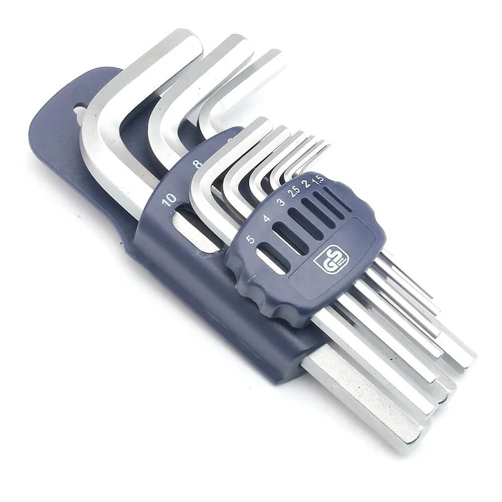 1 Jogo de chaves allens com 9 peças e suporte: 1.5, 2, 2.5, 3, 4, 5, 6, 8 e 10 mm