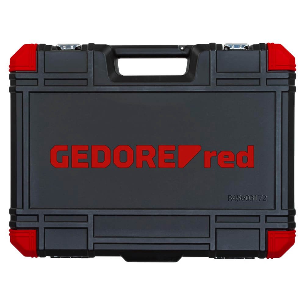 O Jogo de soquete sextavado encaixe 1/4" 3/8" e 1/2" com 172 peças - R45603172 da Gedore Red possui adaptador quadrado com bloqueio de esfera e encaixe quadrado com estria de retenção da esfera. Além disso, conta com catracas reversíveis 1/4″+ 3/8″+1/2″: rotação reversível à direita/esquerda através de alavanca, desengate por botão de pressão, dentes finos, cabeça oval, punho de 2 componentes e fácil manuseio, para utilização com soquetes. Seu acabamento é cromado mate acetinado, apresenta maleta de plástico, design com maior resistência oferecendo uma proteção as ferramentas e dobradiças/fecho em metal.