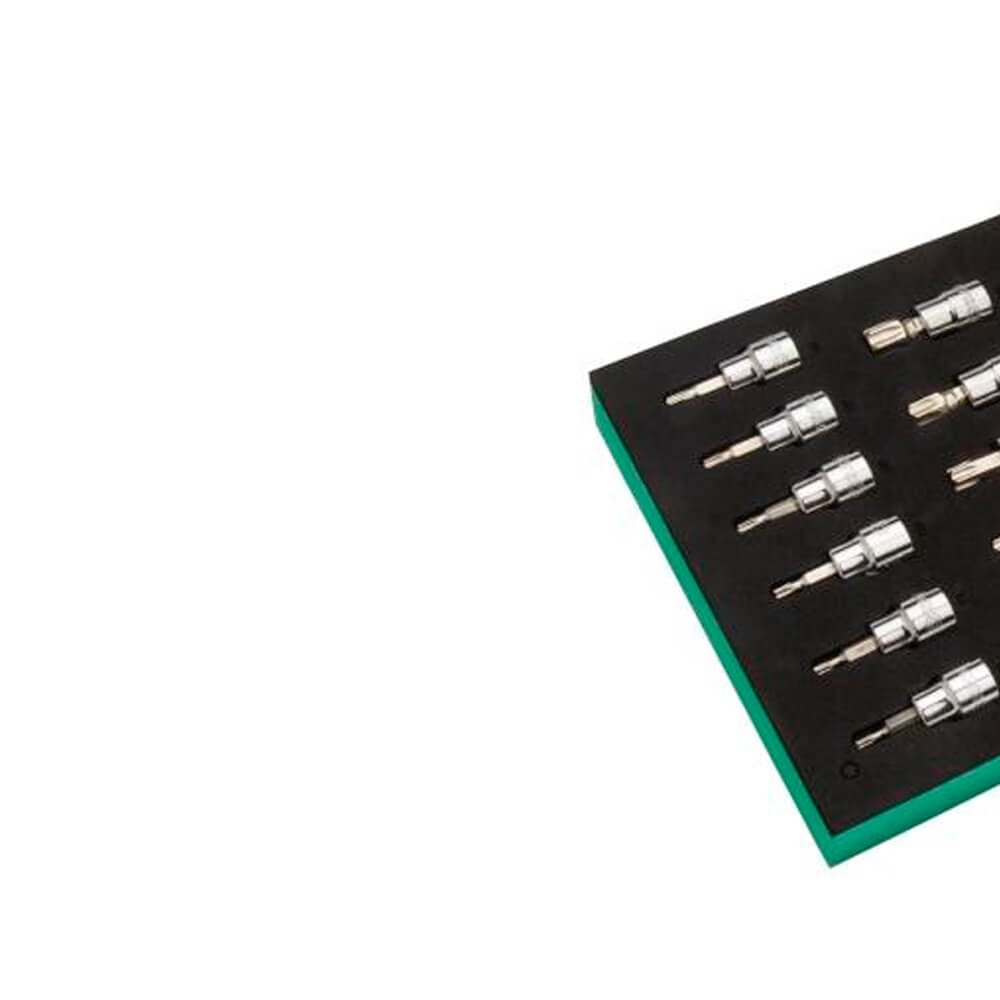 Os Berços Organizadores de EVA SATA são a solução ideal para maximizar a produtividade e a organização em oficinas automotivas e industriais. Com eles, cada ferramenta se encontra no seu lugar, proporcionando um ambiente de trabalho mais produtivo. Desenvolvidos com um design modular e intercambiável, os berços EVA permitem personalizar as gavetas de acordo com as suas preferências, garantindo flexibilidade para adicionar novos conjuntos e transferi-los entre diferentes carros de ferramentas* sempre que necessário. Além disso, são acompanhados de ferramentas funcionais, inovadoras e de alta qualidade, reconhecidas pela durabilidade e resistência que só SATA oferece. Com os berços de EVA SATA, você não apenas organiza sua oficina, mas também eleva o desempenho da sua equipe, economizando tempo na busca por ferramentas e assegurando o bom armazenamento das ferramentas, para que cada trabalho seja realizado com mais praticidade e rapidez.
