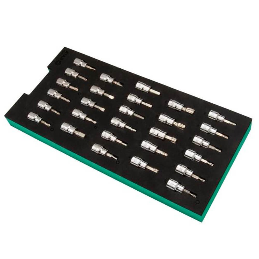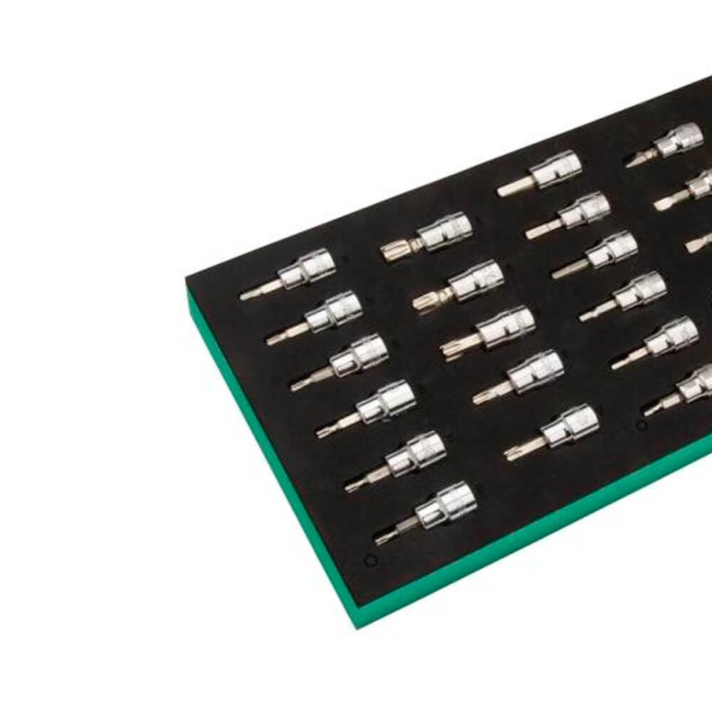 Cada ferramenta SATA se encaixa em um recorte formado a laser que fornece proteção e mantém as ferramentas organizadas e facilmente acessíveis.