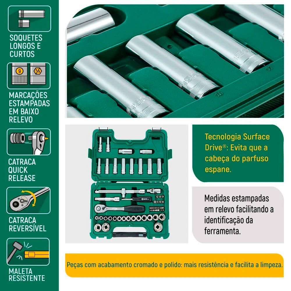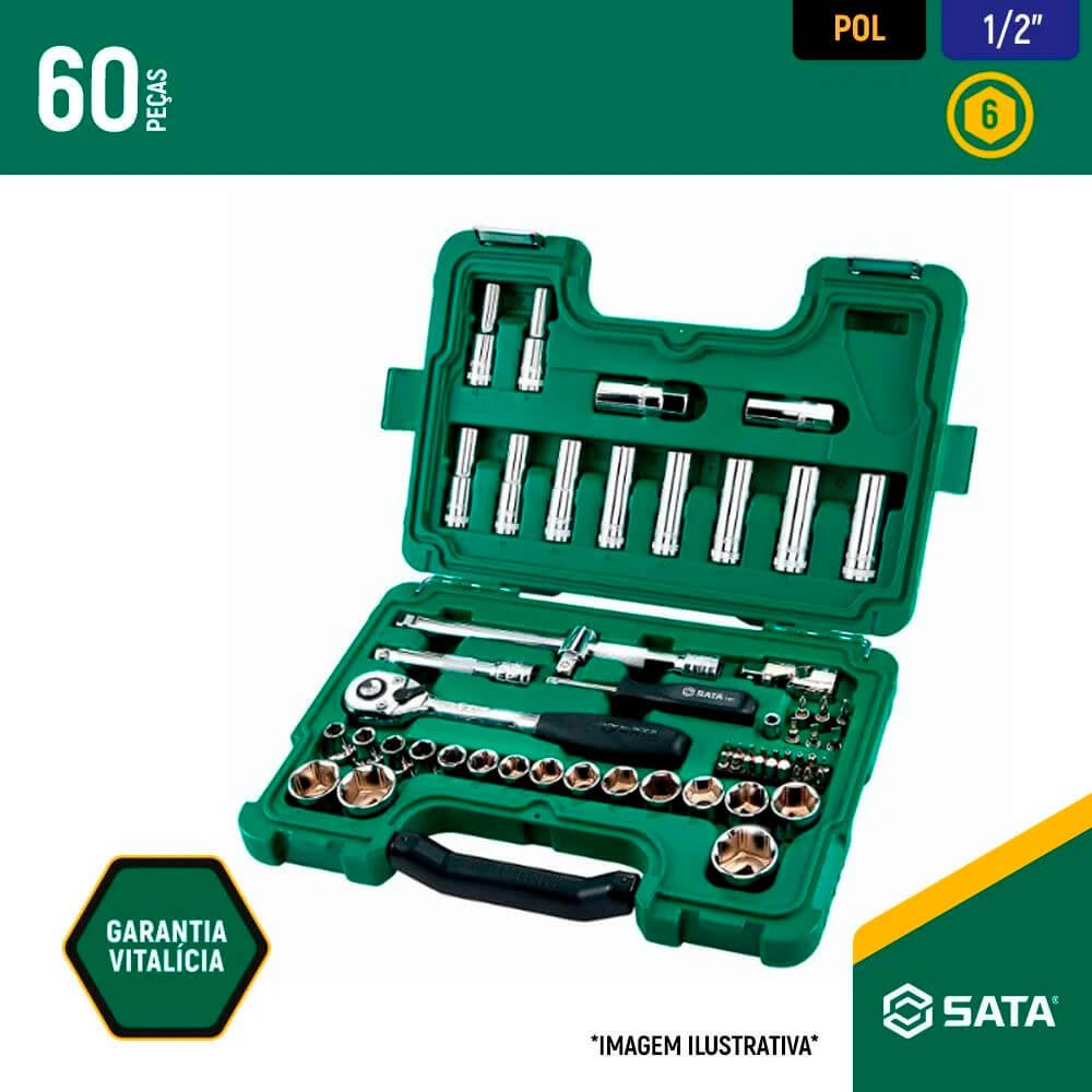 Jogo De Soquetes Sextavados 1/2" Com 58 Peças - Sata