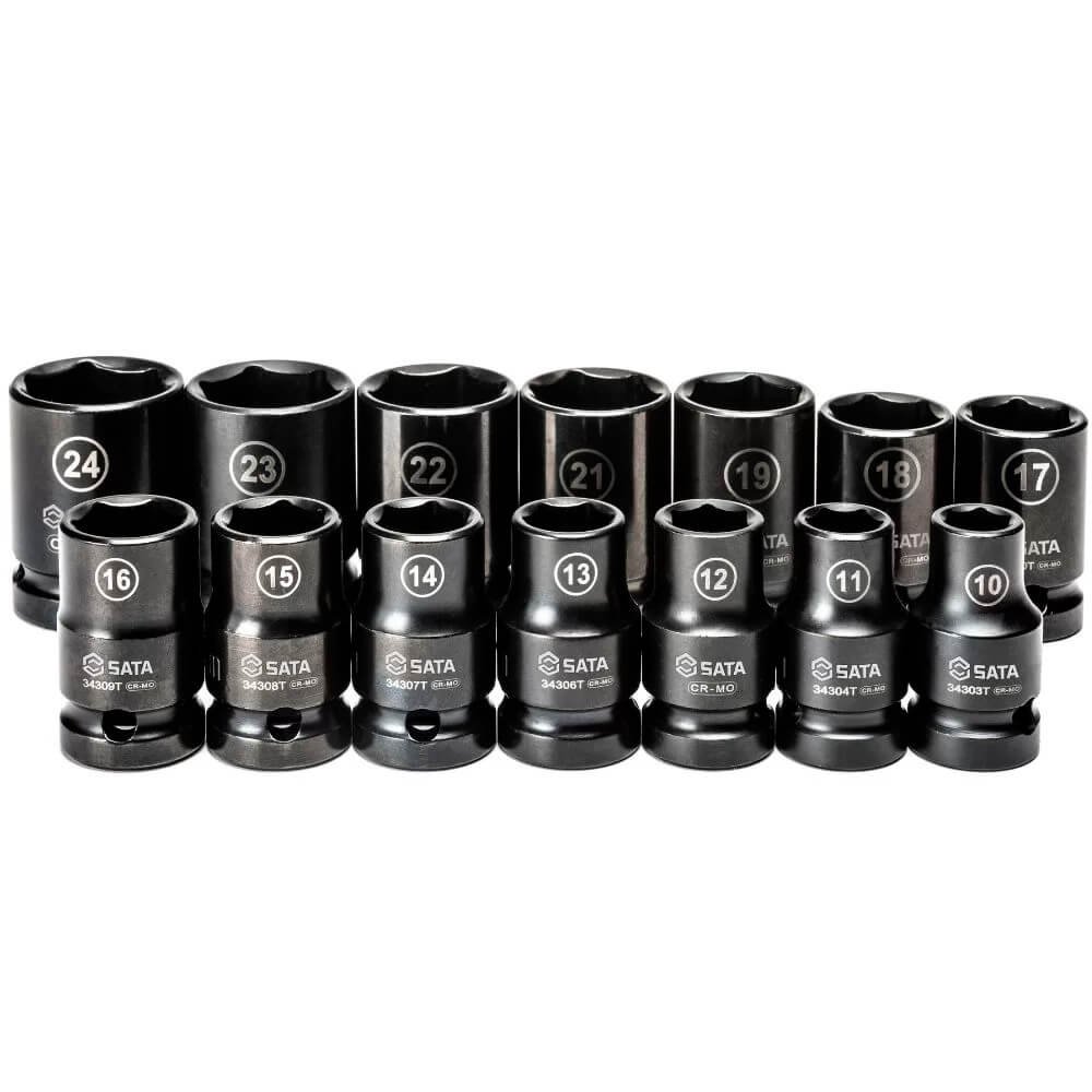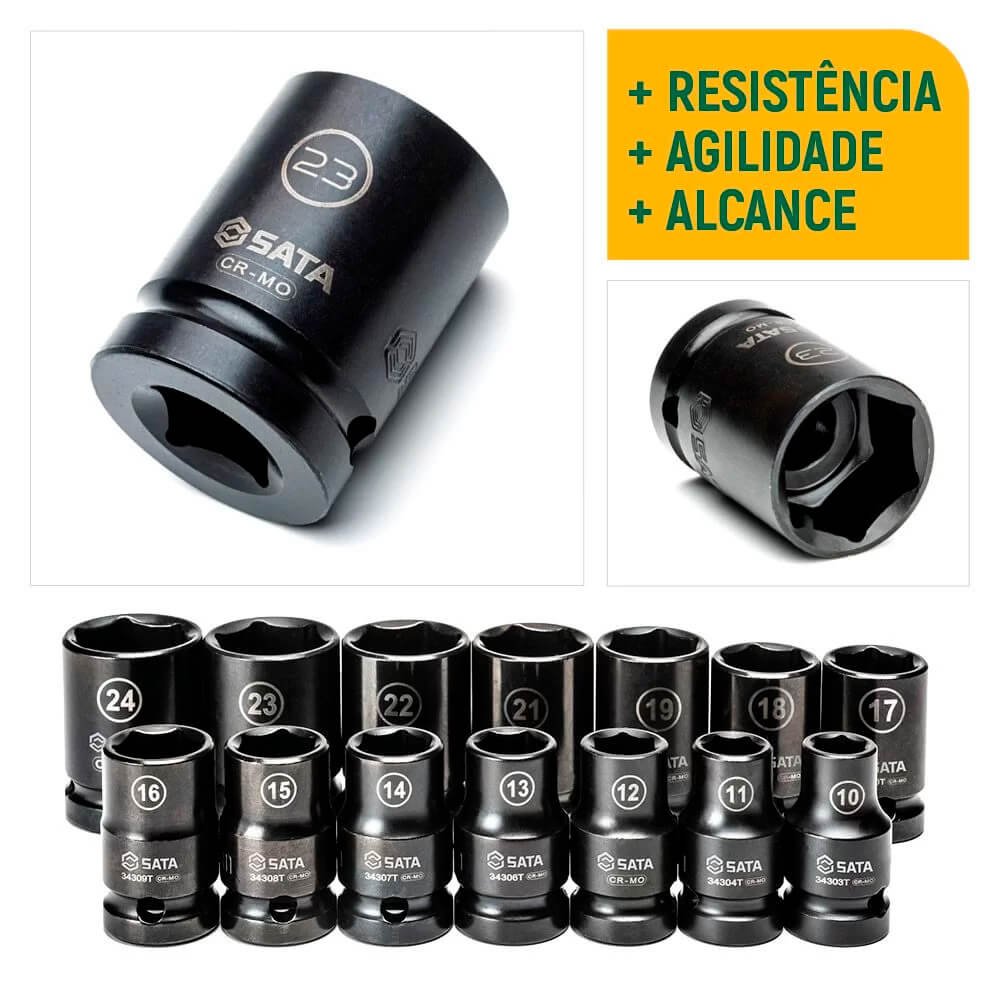Jogo Soquete Impacto 1/2" De 10 à 24mm Sextavado - ST34397T - Sata