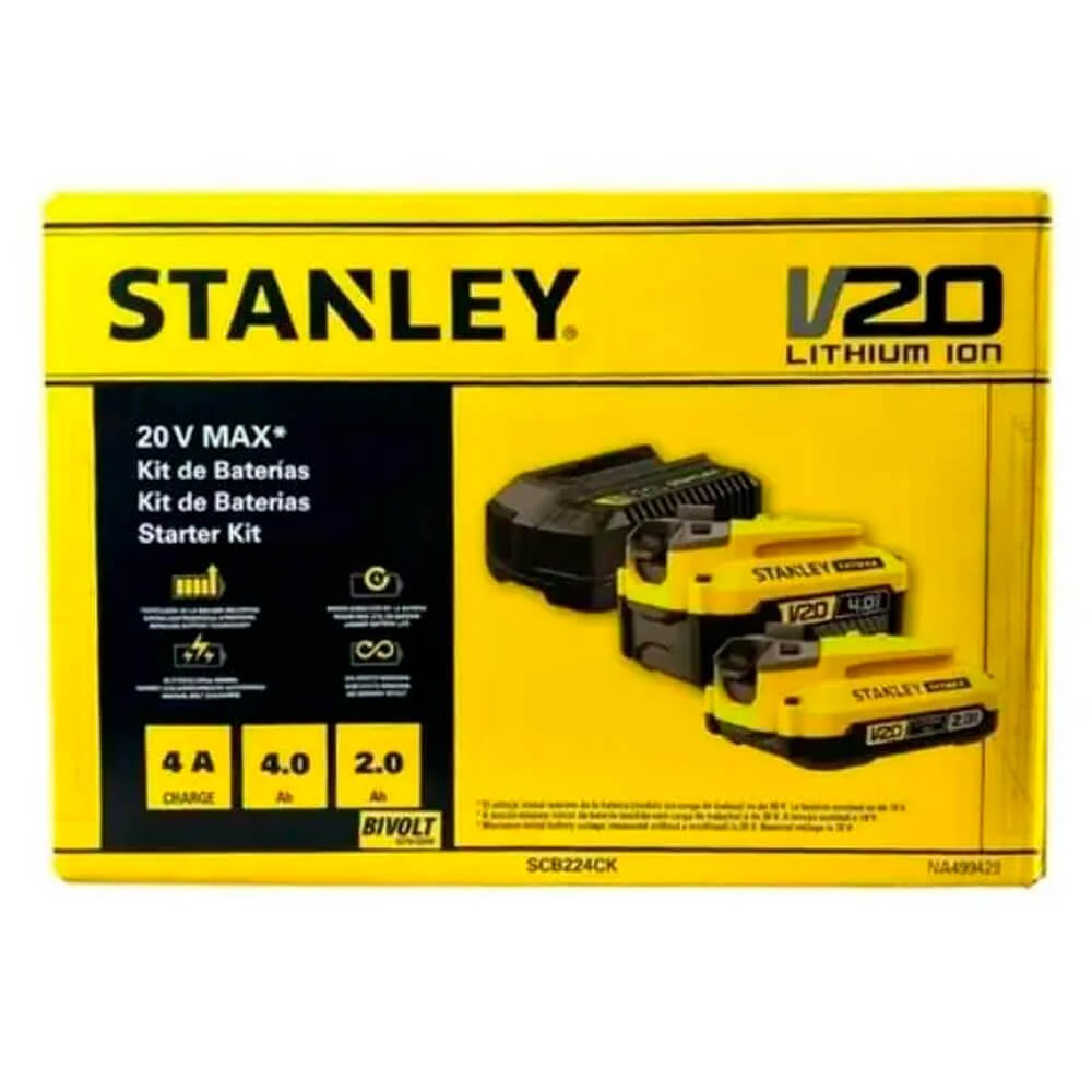 Kit 2 Baterias 20V MAX 2Ah e 4Ah e Carregador Bivolt SCB224CK-BR - Stanley