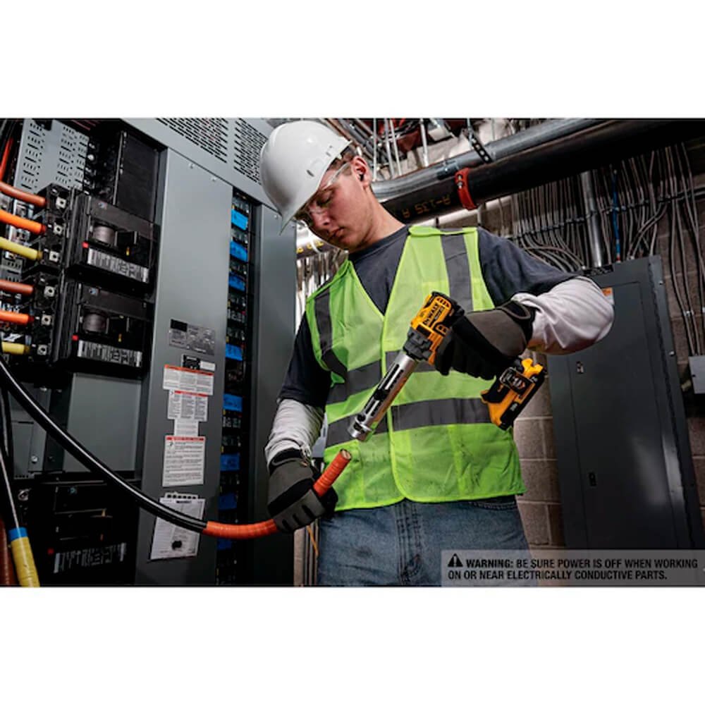 O descascador de cabos sem fio DCE151TD1 20V MAX XR é uma ferramenta elétrica dedicada para descascar consistentemente cabos THHN e XHHW de até 4 polegadas sem a necessidade de uma faca. Usando a bucha apropriada, o descascador de cabos sem fio funciona em cabos de cobre e alumínio, cobrindo uma faixa de tamanho de 6-AWG a 750MCM CU e 900MCM AL.