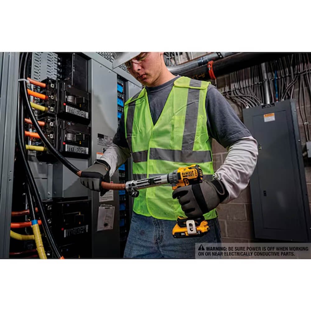 O descascador de cabos sem fio DCE151TD1 20V MAX XR é uma ferramenta dedicada para descascar consistentemente cabos THHN e XHHW de até 4 polegadas sem a necessidade de uma faca. Usando a bucha apropriada, o descascador de cabos sem fio funciona em cabos de cobre e alumínio, cobrindo uma faixa de tamanho de 6-AWG a 750MCM CU e 900MCM AL.