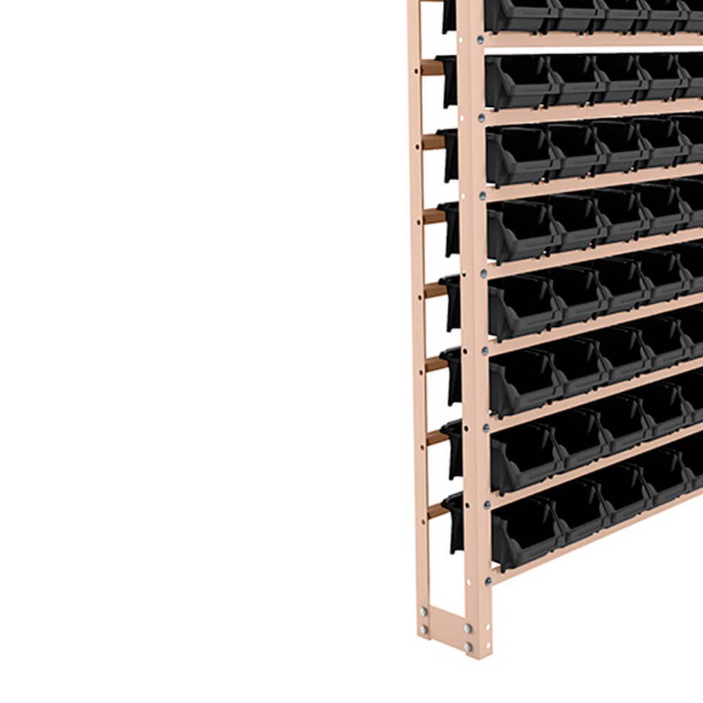 Kit Estante Gaveteiro Organizador 108/3 Preto em aço para encaixar gavetas plásticas, possibilitando diversos tipos de armazenagem. O Kit Estante Gaveteiro é ideal para organizar parafusos e outras peças pequenas, pois facilita o acesso rápido a itens necessários para realizar o trabalho de maneira mais ágil e organizada. Estrutura em aço e 108 Gavetas Empilháveis n° 3 inclusas.