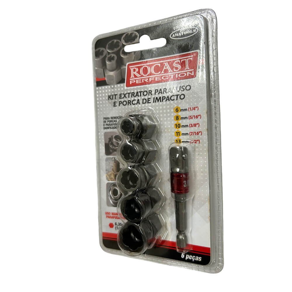 Kit Extrator Parafuso e Porca de Impacto - Rocast 96.0006