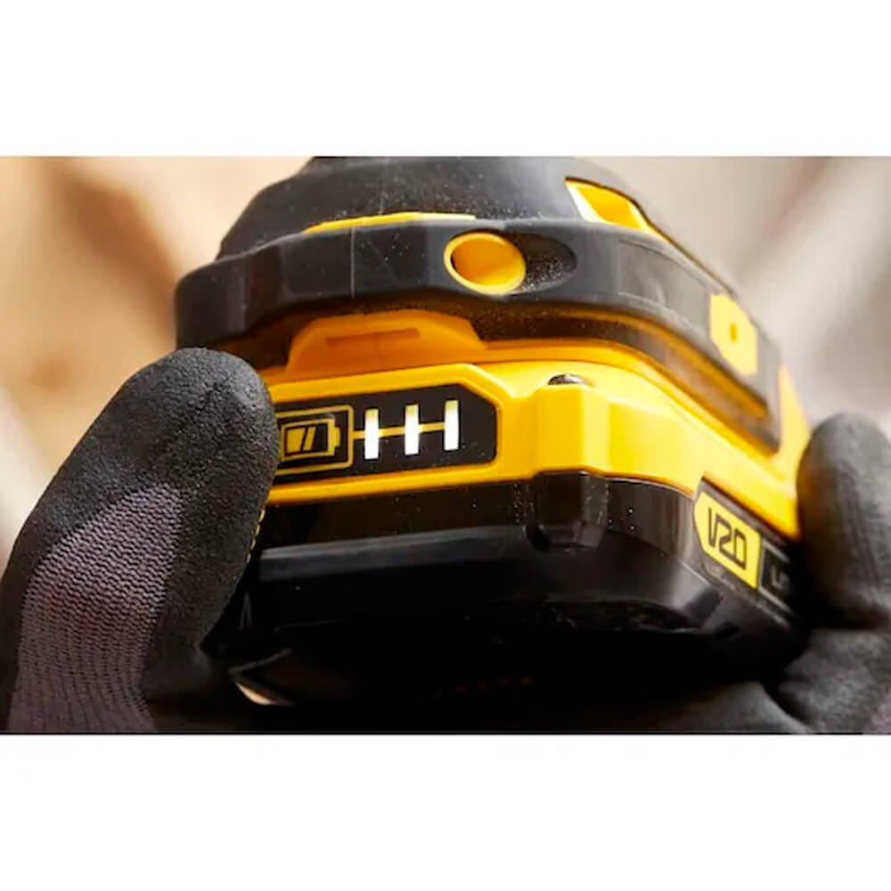 Bateria: v20 de íon de lítio de tecnologia aprimorada, maior vida útil da bateria, mínimo descarregamento automático e sem efeito memória.