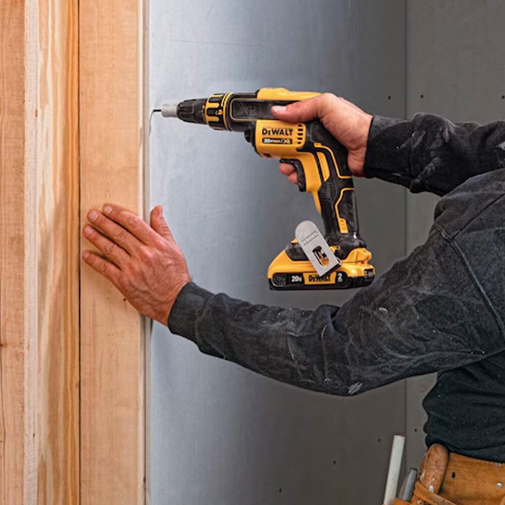 Kit Parafusadeira Drywall com motor BRUSHLESS (sem escovas de carvão). Parte da linha 20V MAX* LI-ION. Leve, compacta e ergonômica; Empunhadura emborrachada; Engate rápido 1/4''; Velocidade variável e reversível com trava de segurança no gatilho; LED permanece ativado por 20 segundos após desligamento do interruptor; Freio eletrônico; Velocidade sem carga de 0-4400 RPM e torque máximo 5-30Nm. Acompanha 2 baterias 20V - 2.0Ah (127V);