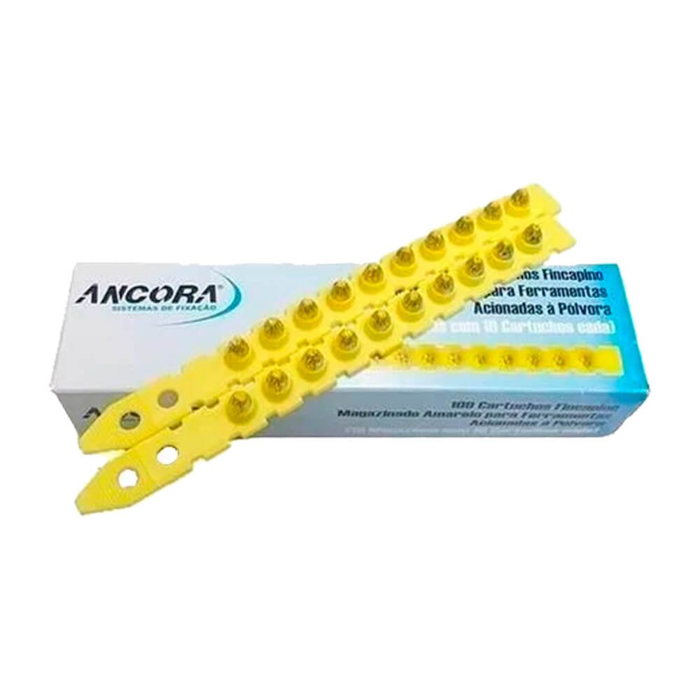 Cartuchos de fixação à pólvora com ação indireta da Âncora são magazinados e contém 10 unidades por pente.