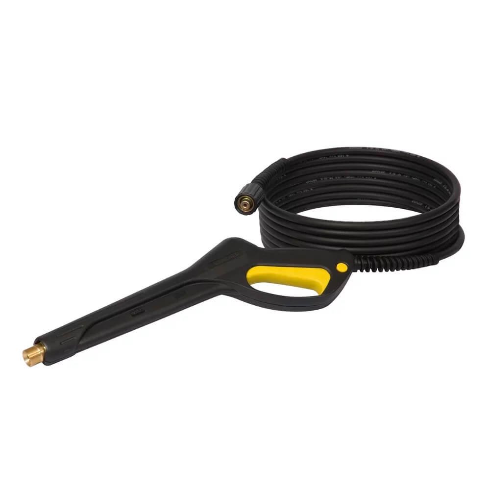 A lavadora de alta pressão profissional leve Kärcher modelo HD 585 Prof S dispõe de uma vazão de 500 l/h com pressão de até 150 bar. Possui design compacto e robusto rodas grandes e baixo centro de gravidade conferindo excelente mobilidade. Possui tubeira e os três pistões de sua bomba em aço inox o que somados ao seu cabeçote latão proporcionam uma maior resistência e durabilidade à altas pressões. Conta com mangueira reforçada com trama de aço, alça de transporte, dosador de detergente integrado e espaço para armazenar o cabo elétrico e a mangueira. Possibilidade de sucção de reservatório. Consagrada como líder de mercado. Versão atualizada que possui mangueira com trama de aço. Mais resistente, durável e eficaz para seu trabalho.