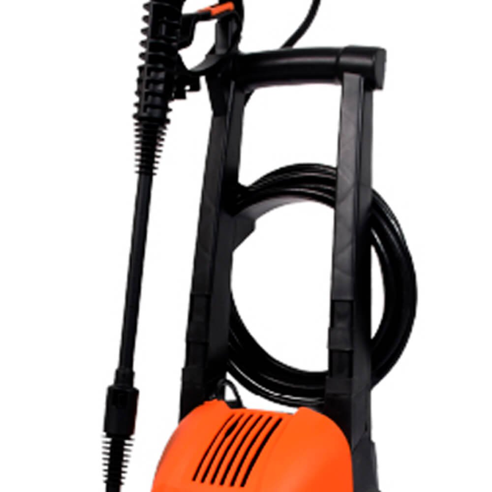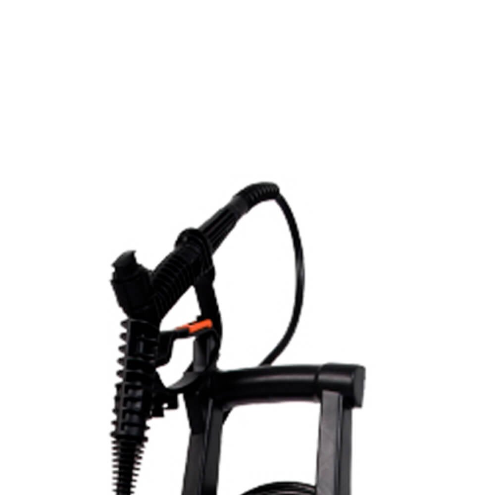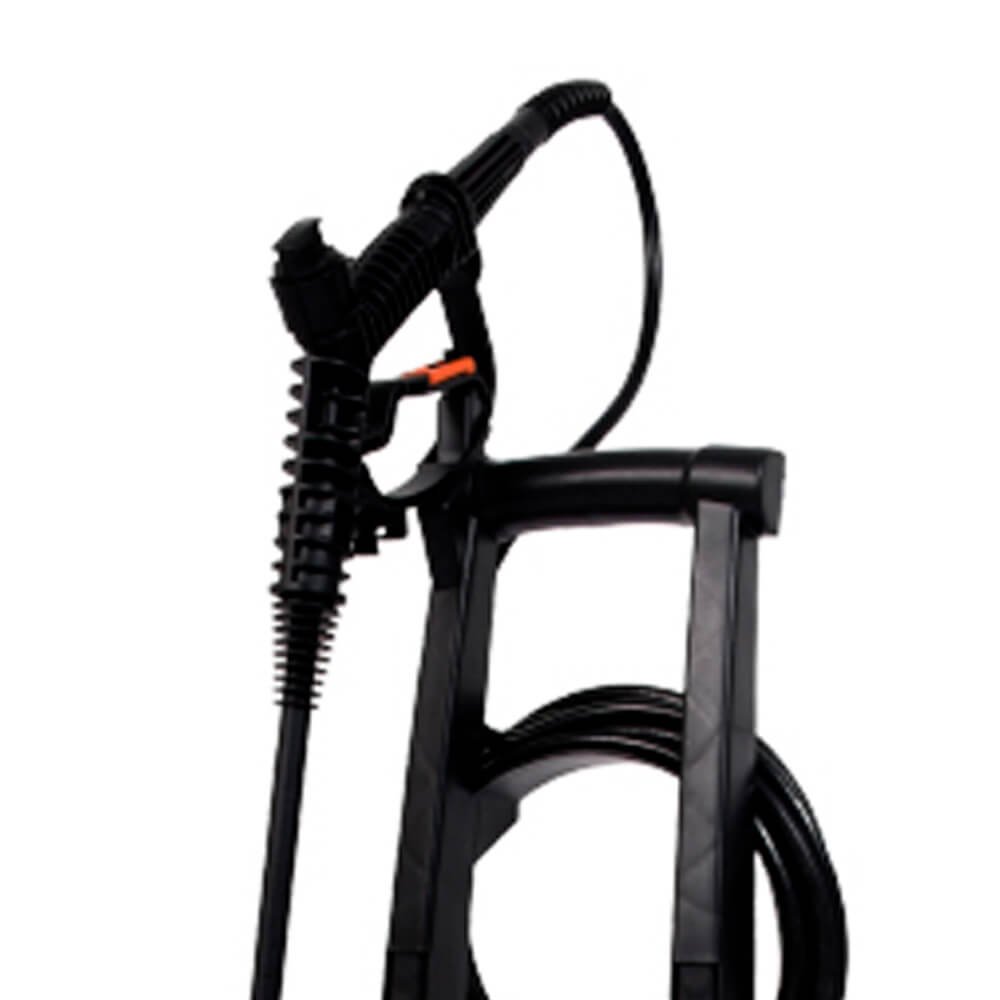 - Com a mangueira de alta pressão de 6 metros, você pode alcançar lugares mais distantes sem precisar movimentar a máquina constantemente. Além disso, a pistola de alta pressão e o engate rápido garantem uma fácil conexão e manuseio durante a utilização.