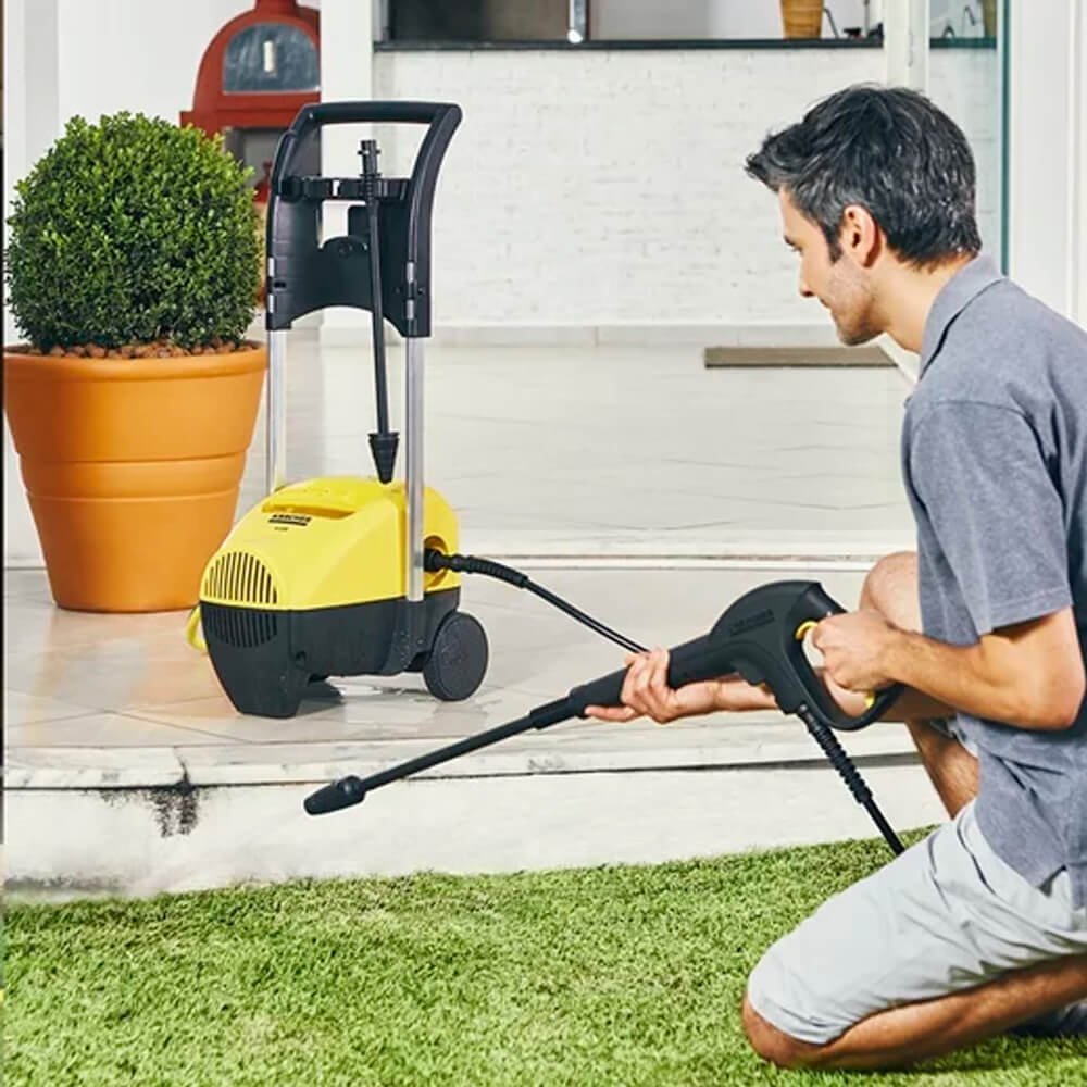 A lavadora de alta pressão K 3.30 possui motor a indução, ótima performance, alto desempenho e durabilidade. Ideal para limpezas diárias pesadas ou de grandes áreas. Ela é robusta, possui alça e rodas que facilitam o transporte. Acompanha tubeira Vario, com jato leque, ideal para remoção de sujeiras pesadas, tubeira turbo, ideal para sujeiras concentradas e mangueira de alta pressão de 6 metros. Ideal para a limpeza carros, bicicletas e áreas como cháracas, quintais, garagens, jardins, etc.