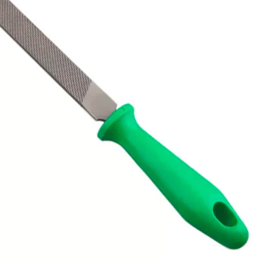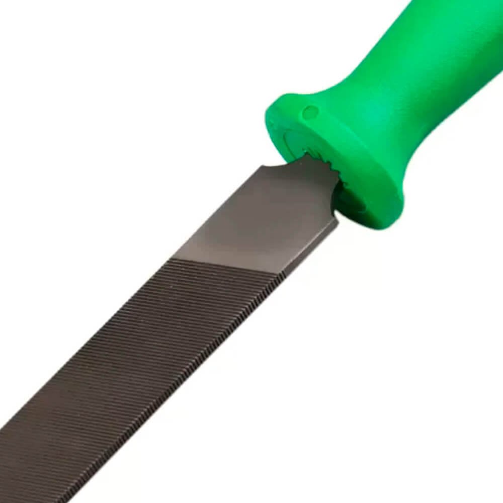 A Lima para Enxada 8'' K&F possui um corte simples, e geralmente são utilizadas para afiar enxadas, arados, machados, facões, facas, tesouras e entre outras diversas ferramentas de corte. É levemente afilada na largura, têm corte duplo em ambas as faces e um corte simples em ambas as bordas, com um perfil chato para superfícies planas ou convexas.