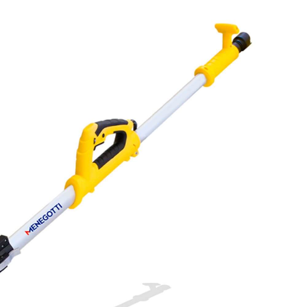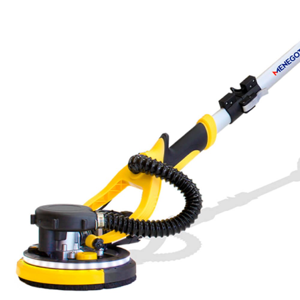 Equipamento com braço extensível capaz de chegar em até 1,8 m, não necessita de aspirador externo, por ter seu próprio sistema de sucção. Por ser articulável permite melhores posições de trabalho em diversos locais. Possui lanterna de led, acionamento elétrico, sistema de fixação das lixas com velcro, que permite colar e descolar rapidamente, pega mão em borracha macia para maior conforto e ergonomia.